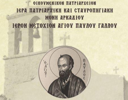 - Από τις 18 έως τις 30 Ιουνίου 2019 στον Ιερό Ναό Αγίου Παύλου Γάλλου θα τελείται κάθε πρωί η Θεία Λειτουργία.