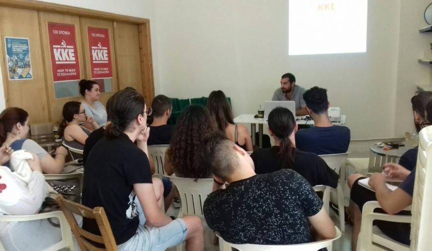 Με ιδιαίτερο ενδιαφέρον πραγματοποιήθηκε η σύσκεψη της Τ.Ο. ΑΕΙ Ρεθύμνου της ΚNE , με θέμα “Η πρόταση εξουσίας του ΚΚΕ ” με ομιλητή τον Βαγγέλη Αγγελογιαννάκη , γραμματέα της Τ.Ε. Ρεθύμνου του ΚΚΕ.