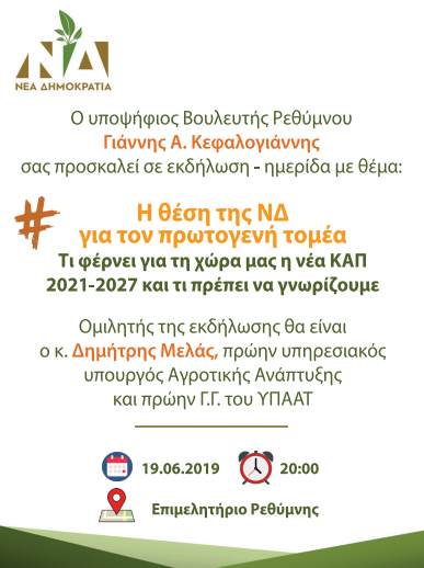 Ο υποψήφιος Βουλευτής Ρεθύμνου Γιάννης Κεφαλογιάννης σας προσκαλεί σε εκδήλωση - ημερίδα με θέμα:
