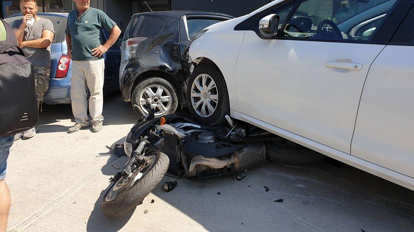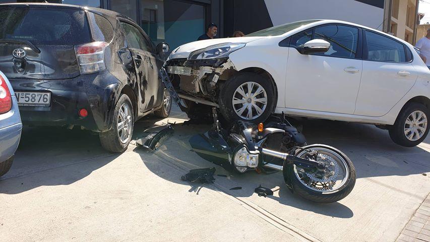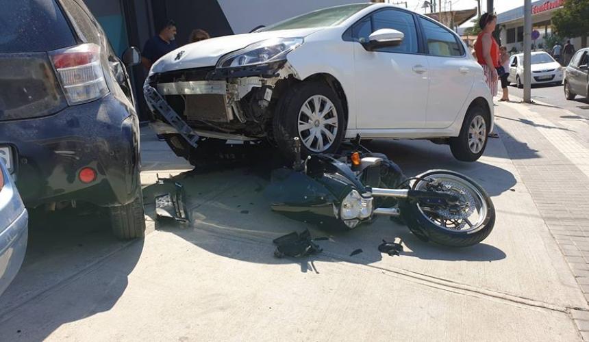 Το αυτοκίνητο που οδηγούσε τουρίστρια κυριολεκτικά ανέβηκε πάνω στη μοτοσυκλέτα στην οποία επέβαιναν ένας 32χρονος με συνεπιβάτιδα μια 29χρονη.