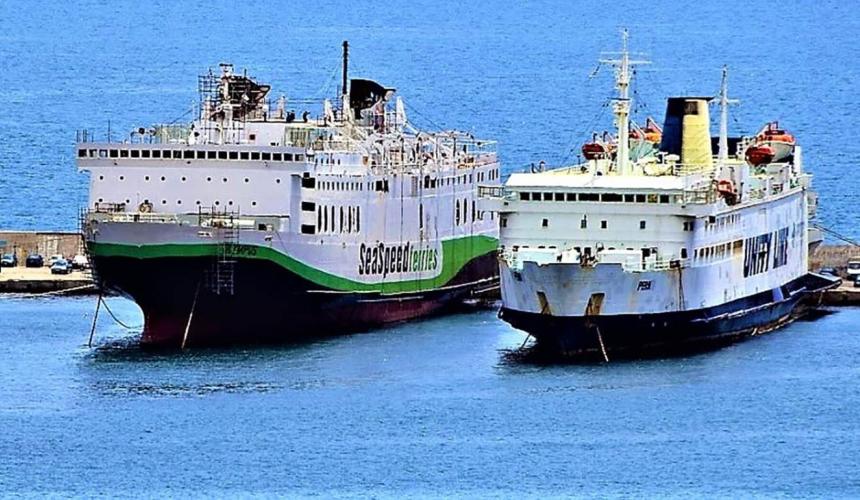 Το πλοίο «Olympus» της Sea Speed Ferries, βρίσκεται δεμένο στον νέο μώλο Δραπετσώνας και ετοιμάζεται για να ξεκινήσει τα δρομολόγια στη νέα γραμμή, Πειραιάς - Μήλος - Σαντορίνη - Ρέθυμνο.