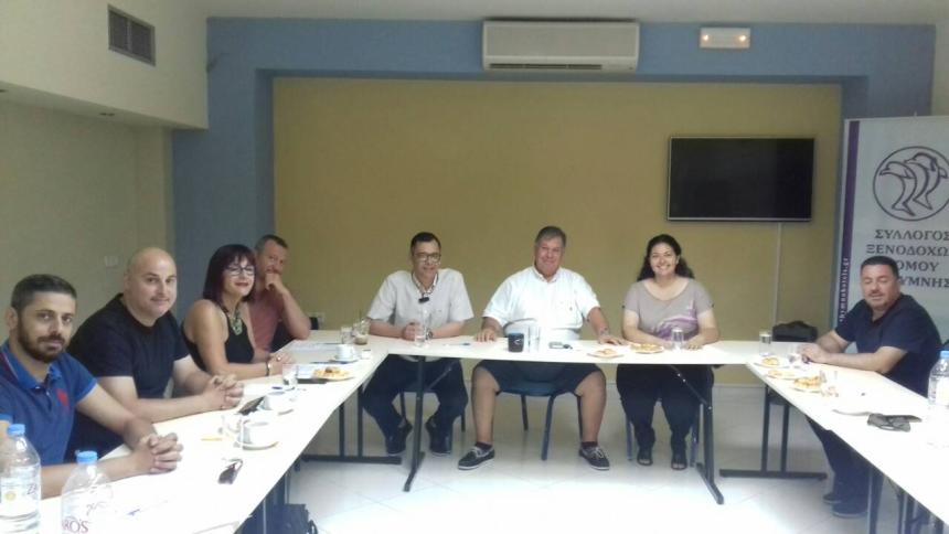 Στη συνέχεια η κα Αγάπη Κακλιδάκη (Κακλή) Υποψήφια Βουλευτής Νέας Δημοκρατίας Νομού Ρεθύμνης επισκέφτηκε τον Σύλλογο ξενοδόχων Ρεθύμνης και συζήτησε με τον κ. Εμμ. Τσακαλάκη Πρόεδρο του Συλλόγου και τα μέλη. Κατά την διάρκεια της συζήτησης ο κ. Τσακαλάκης, ανέφερε τις χρόνιες παθογένειες και προβλήματα που υπάρχουν στον κλάδο του Τουρισμού. Παράλληλα από μεριά του κ.Τσακαλάκη έγινε αναφορά σχετικά με την τιμολόγηση της χρήσης αιγιαλού. Τέλος η κα Αγάπη Κακλιδάκη (Κακλή) επισήμανε τη ανάγκη εκσυγχρονισμού των απαιτούμενων υποδομών με σκοπό την ανάπτυξη του τουρισμού.