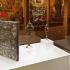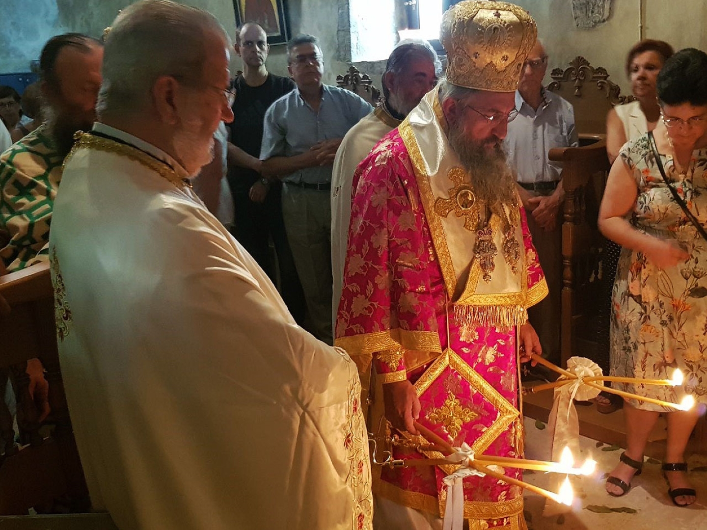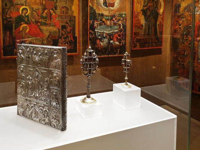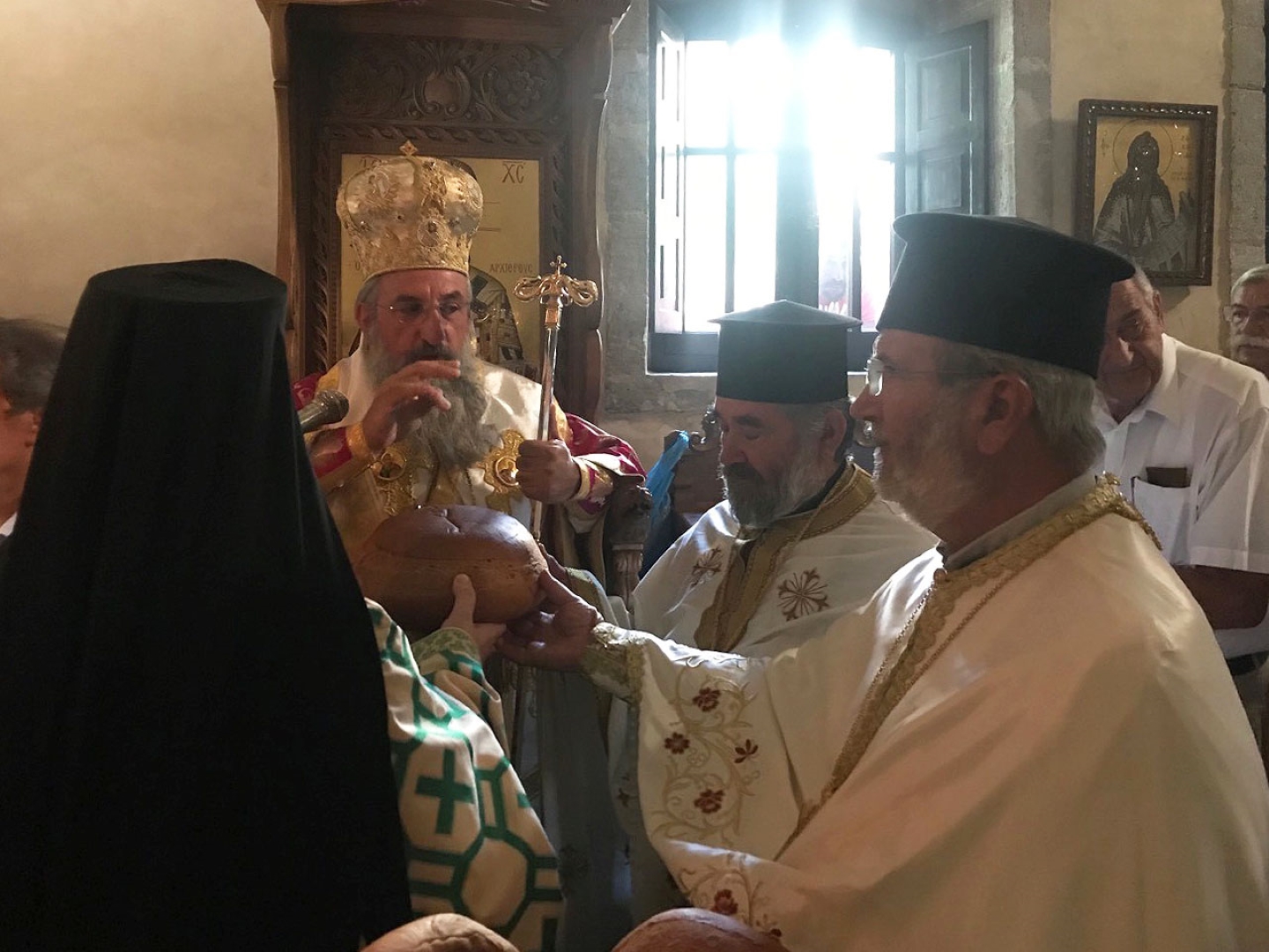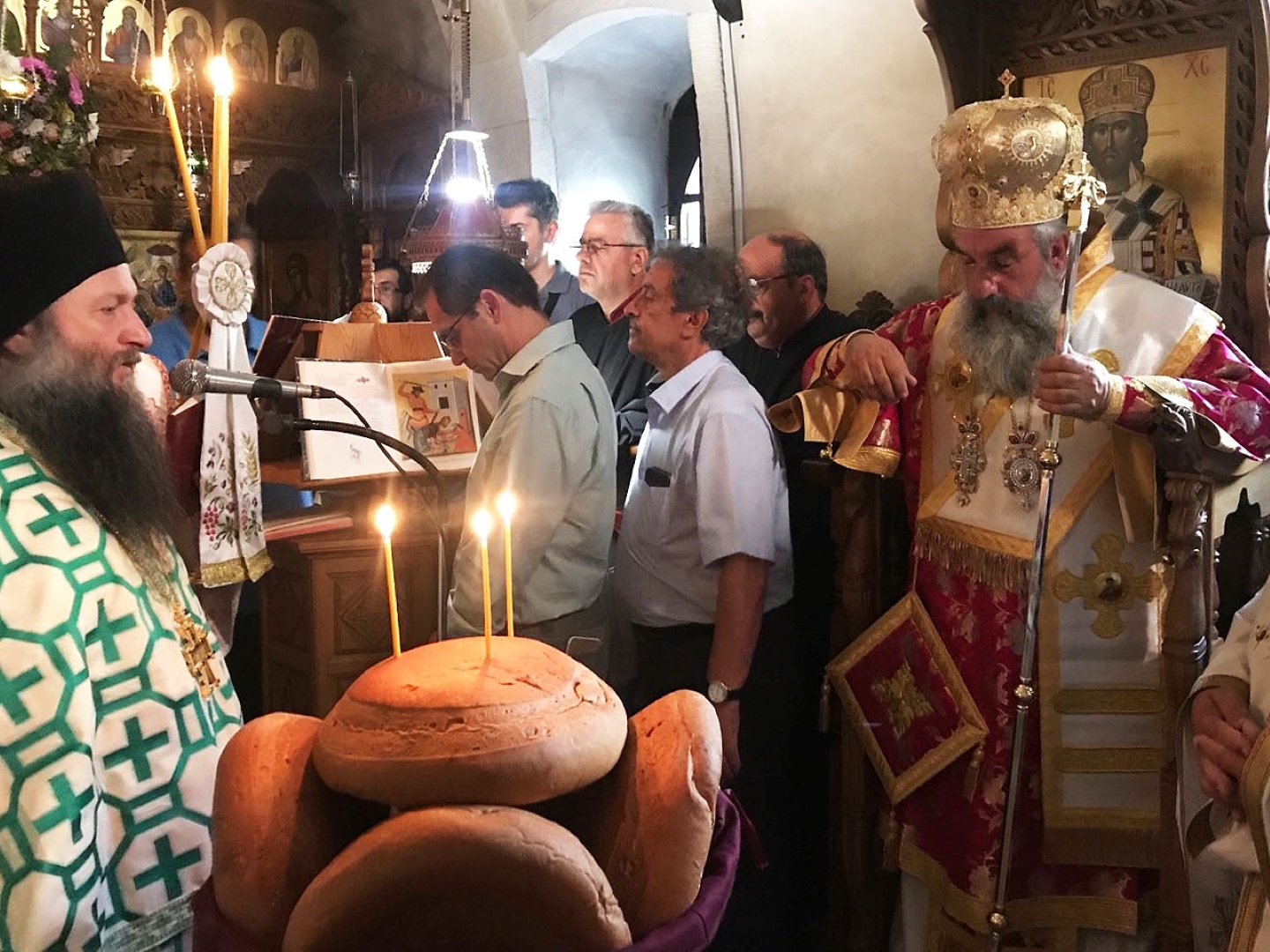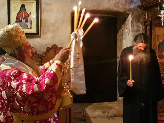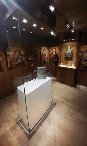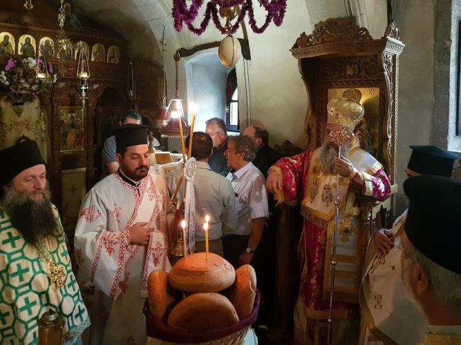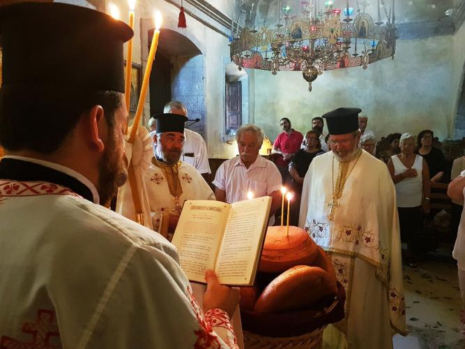 Πριν από τον Εσπερινό ο Σεβ. Μητροπολίτης Ρεθύμνης και Αυλοποτάμου κ. Ευγένιος τέλεσε τον Αγιασμό των Εγκαινίων του νέου Κειμηλιαρχείου της Ιεράς Μονής, πλαισιούμενος από τον Ηγούμενο Πανοσιολ. Αρχιμ. Παρθένιο Καλυβιανάκη, με την φροντίδα του οποίου αυτό δημιουργήθηκε. Παραβρέθηκαν ο διακεκριμένος μουσειολόγος κ. Ηλίας Παπαγεωργίου και οι συνεργάτες του, οι οποίοι επιμελήθηκαν τη μελέτη και κατασκευή του Κειμηλιαρχείου. Ακολούθησε η παραδοσιακή μοναστηριακή δοχή σε όλους τους προσκυνητές.