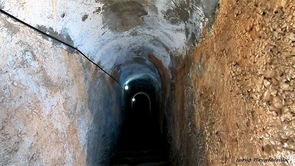 Περιορίστηκα λοιπόν σε κάποια μισόλογα για τη μυστηριώδη αυτή υπόγεια σήραγγα η οποία ξεκινά από την παραλία της Αγίας Γαλήνης και εκτείνεται σε δύο επίπεδα. Το πρώτο είναι παράλληλο προς το έδαφος και μετά από μια μικρή σχετικώς δαιδαλώδη πορεία καταλήγει σε αδιέξοδο.