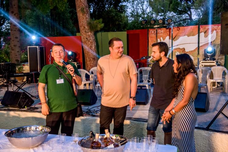 Παράλληλα, τα μέλη της Ομάδας Recevin, Στέλιος Κλάδος (οινολόγος-οινοποιός), Εύη Δενδράκη (οινοχόος) και Δημήτρης Ζαχαριάς (οινοχόος), παρουσίασαν στους επισκέπτες κρητικά αποστάγματα, δίνοντας πληροφορίες για τη διαδικασία απόσταξης και καλώντας τους να δοκιμάσουν ρακή, παλαιωμένη και μη, και οπούντια, ένα κρητικό απόσταγμα, το οποίο προέρχεται από το φραγκόσυκο. Τα αποστάγματα ήταν ευγενική χορηγία του Οινοποιείου Ζουμπεράκη και του Αγροτικού Συνεταιρισμού Μινωική Γη.