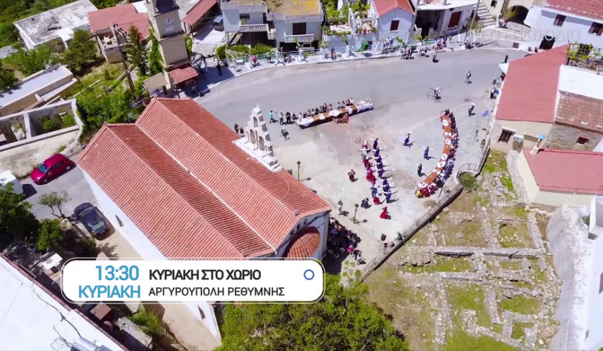 Η εκπομπή της ΕΡΤ3 «Κυριακή στο χωριό» αφιερωμένη στην Αργυρούπολη Ρεθύμνου, θα προβληθεί την Κυριακή 14 Ιουλίου στις 1:30 το μεσημέρι.