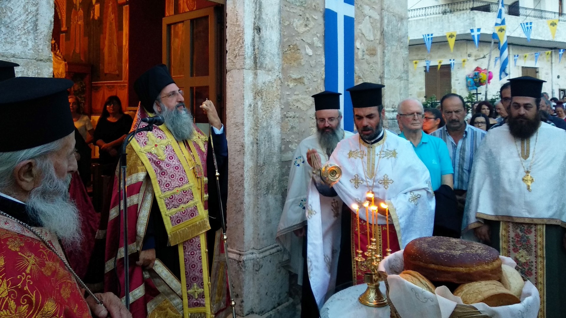 Το εσπέρας της Τρίτης 16ης Ιουλίου 2019, ο Σεβ. Μητροπολίτης Ρεθύμνης και Αυλοποτάμου κ. Ευγένιος χοροστάτησε κατά τον Μέγα Πανηγυρικό Εσπερινό, στον οποίο συμμετείχαν και πολλοί Κληρικοί της Μητροπόλεώς μας. Μεταξύ άλλων, παρέστησαν η Αντιπεριφερειάρχης Ρεθύμνου κ. Μαίρη Λιονή με τον σύζυγό της κ. Χρήστο Λιονή, Καθηγητή της Ιατρικής Σχολής του Πανεπιστημίου Κρήτης, ο Αντιδήμαρχος Ρεθύμνης κ. Δημήτριος Λελεδάκης, ο Εντιμολ. κ. Μιχαήλ Τρούλης, Άρχων Ιερομνήμων της Αγίας του Χριστού Μεγάλης Εκκλησίας, με τη σύζυγό του, και η κ. Αγάπη Κακλιδάκη, υποψήφια βουλευτής Νομού Ρεθύμνης. Στο τέλος του Εσπερινού, ο Σεβασμιώτατος Ποιμενάρχης μας κ. Ευγένιος μίλησε όπως πάντα εμπνευσμένα προς τους πολυάριθμους προσκυνητές με αφορμή το ιδιαιτέρως λαοφιλές ιερό πρόσωπο της Αγίας Μαρίνης.