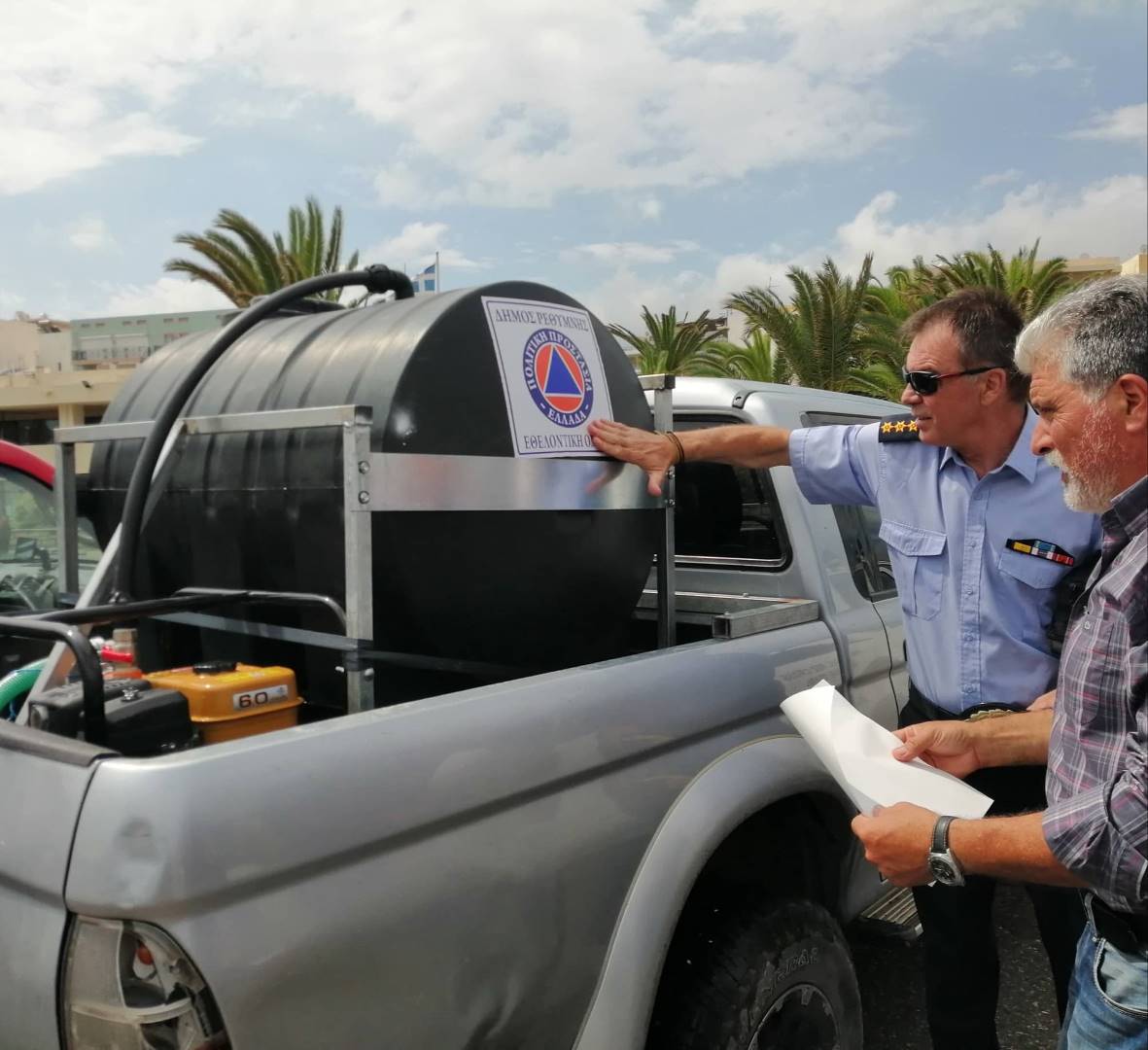 Τα οχήματα παρεδόθησαν την περασμένη Τετάρτη, στον χώρο της μαρίνας στο Ρέθυμνο, τα οποία όπως ανέφερε ο αρμόδιος αντιδήμαρχος κ. Αγριμάκης διατίθενται εθελοντικά κυρίως από προέδρους τοπικών κοινοτήτων και άλλους εθελοντές , που νοιάζονται για την προστασία του τόπου τους», υπογραμμίζοντας ο ίδιος ότι «γίνεται προσπάθεια όταν υπάρχει αναγκαιότητα να είμαστε ετοιμοπόλεμοι».