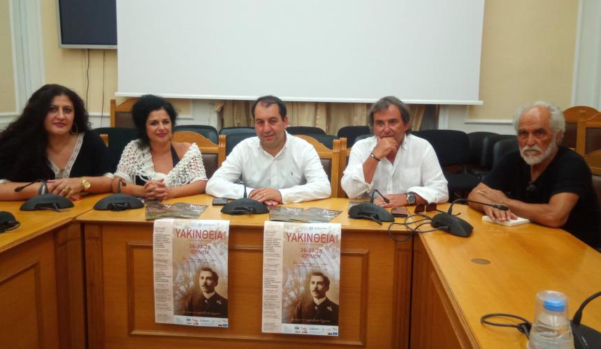 Με την συνδιοργάνωση της Περιφέρειας Κρήτης θα πραγματοποιηθεί το φεστιβάλ πολιτισμού «ΥΑΚΙΝΘΕΙΑ 2019» όπου οι φετινές εκδηλώσεις θα είναι αφιερωμένες στον μεγάλο ευεργέτη Μιχάλη Σταυρακάκη ιδρυτή και χρηματοδότη του γυμνασίου Ανωγείων. Σε σημερινή συνέντευξη τύπου στη Περιφέρεια Κρήτης παρουσιάστηκε το φεστιβάλ από τον Αντιπεριφερειάρχη Πολιτισμού Κώστα Φασουλάκη, Λουδοβίκο των Ανωγείων, Κατερίνα Βρέντζου ηθοποιός συντονίστρια των εκδηλώσεων, Ελένη Σμπώκου μέλος του δ.σ. του σωματείου φίλων «Υακινθείων» και τον Μήτσο Σταυρακάκη εκπρόσωπο της ομάδας πρωτοβουλίας για την ίδρυση του συλλόγου αποφοίτων και φίλων του «Σταυράκειου γυμνασίου-λυκείου Ανωγείων».