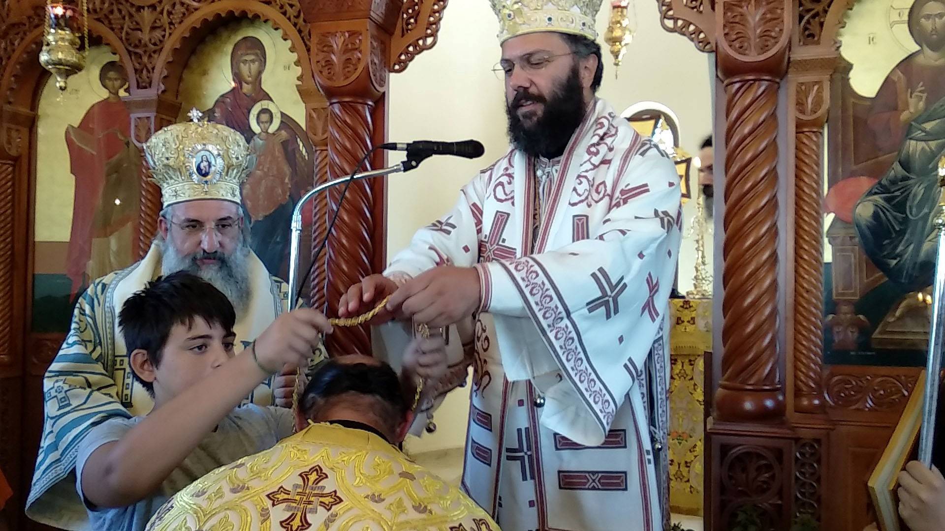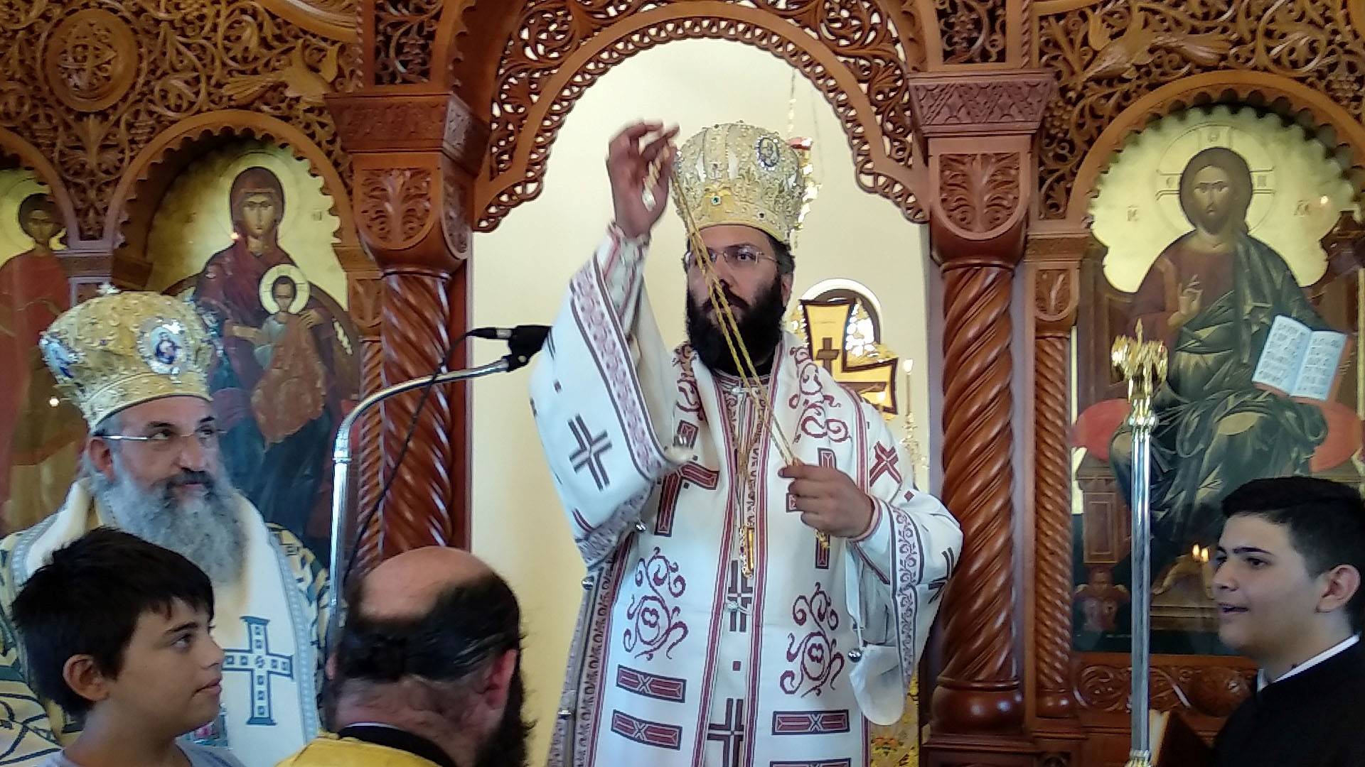 Στο τέλος της Θείας Λειτουργίας, με την παράκληση του Επισκόπου μας, ο Σεβ. Μητροπολίτης Αυστρίας κ. Αρσένιος τέλεσε τις εις Πρωτοπρεσβύτερον χειροθεσίες των Αιδεσ. Οικον. Ευαγγέλου Ζαφειρόπουλου και Αιδεσ. Οικον. Παναγιώτη Παπαδάκη.