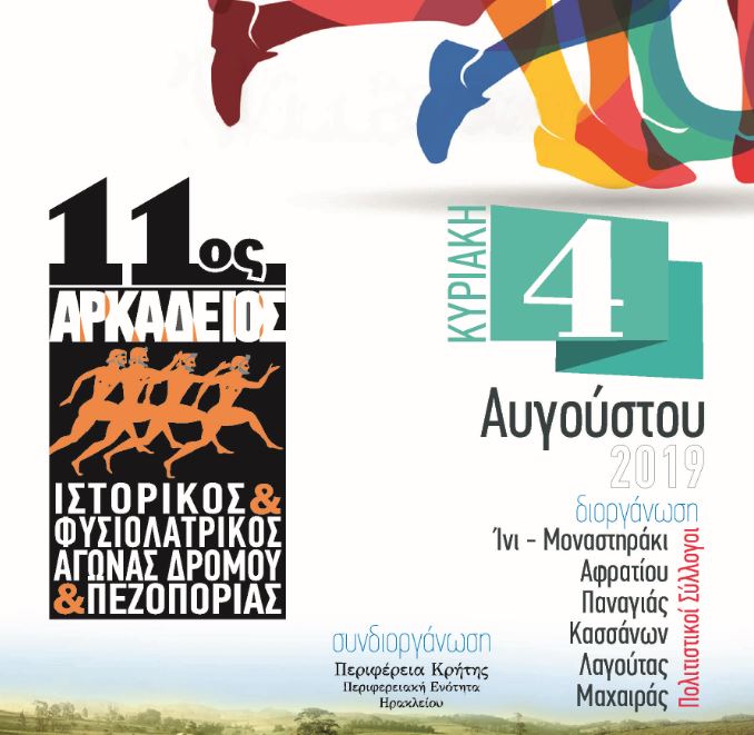 Ο Πολιτιστικός σύλλογος Ίνι – Μοναστηράκι «ΙΝΑΤΟΣ», η Περιφέρεια Κρήτης - Περιφερειακή Ενότητα Ηρακλείου και το Europe Direct σας προσκαλούν στις εκδηλώσεις «ΑΡΚΑΔΕΙΑ 2019», στο Ίνι: