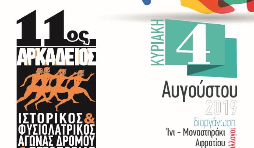 Την ιστορία, την αρχαιολογία, τον αθλητισμό και το πνεύμα συνεργασίας θέλοντας να τονίσουν και να καλλιεργήσουν οι 6 πολιτιστικοί σύλλογοι των επτά χωριών ΙΝΙΟΥ – ΜΟΝΑΣΤΗΡΑΚΙΟΥ, ΑΦΡΑΤΙΟΥ, ΠΑΝΑΓΙΑΣ, ΚΑΣΣΑΝΩΝ, ΛΑΓΟΥΤΑΣ ΚΑΙ ΜΑΧΑΙΡΑΣ, αποφάσισαν την από «ΚΟΙΝΟΥ» διοργάνωση του φετινού ΑΡΚΑΔΕΙΟΥ ΔΡΟΜΟΥ.