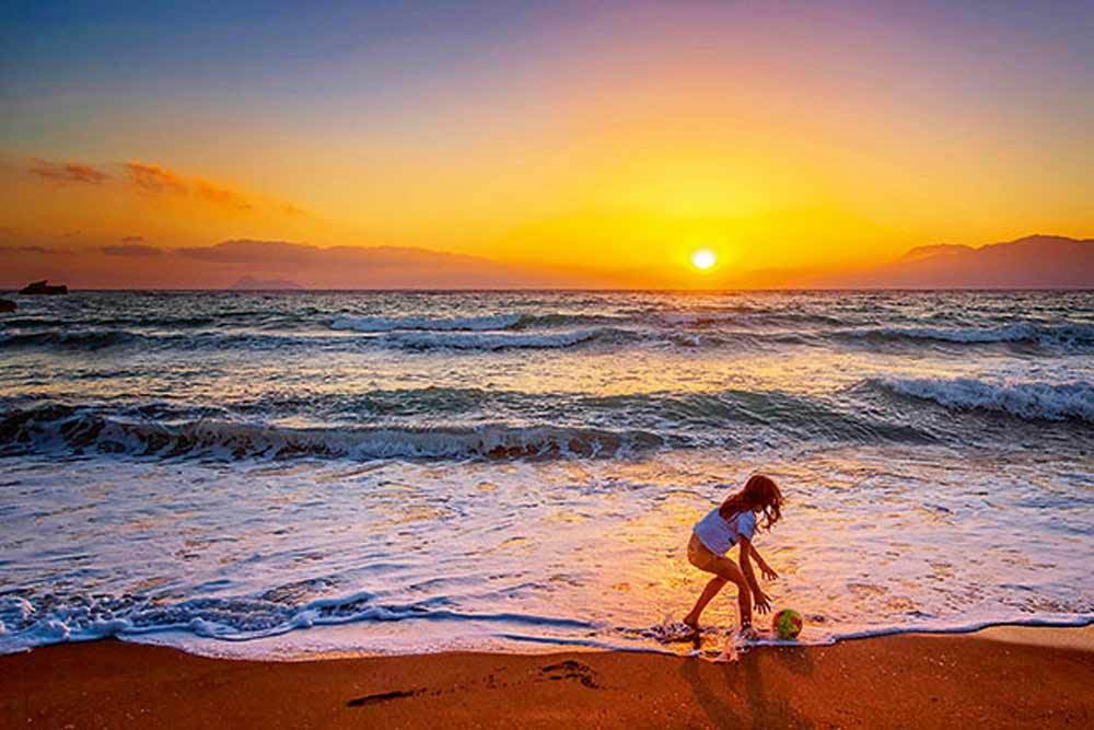 H μεγάλη παραλία του Κομμού, δίπλα στα Μάταλα, ιδανική για παιχνίδια στην άμμο. (Φωτογραφία: © ΠΕΡΙΚΛΗΣ ΜΕΡΑΚΟΣ)