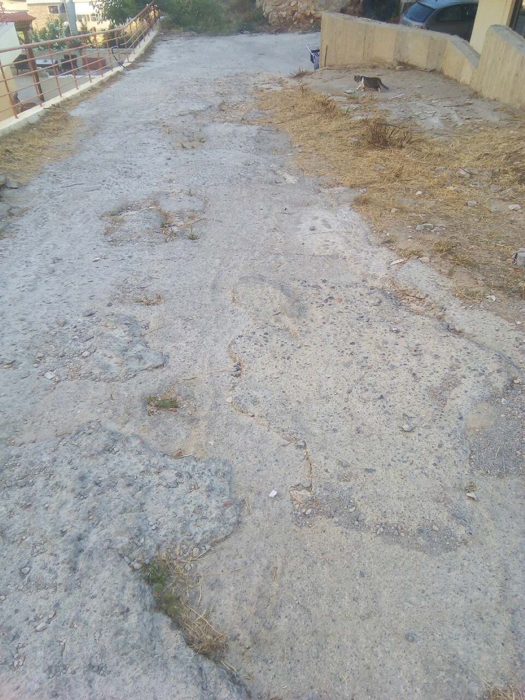 Ειδικότερα, έγινε καθαίρεση παλαιού μπετόν του οδοστρώματος, καθαρισμός, διαμόρφωση και στρώση βιομηχανικού δαπέδου ενώ απομακρύνθηκαν φερτά υλικά και απορρίμματα από παρακείμενο χώρο που χρησιμοποιείται από τους περιοίκους ως χώρος στάθμευσης οχημάτων.