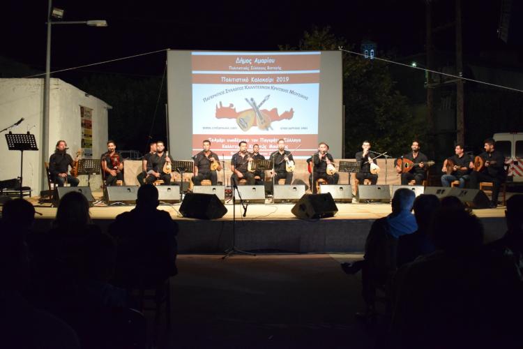 Είναι αδύνατο να περιγράψει κάποιος με λέξεις τα συναισθήματα που γεννήθηκαν όταν λύρες απόλυτα συγχρονισμένες με βιολιά και λαούτα, συνοδευόμενα από κιθάρα, μπάσο και κρουστά πλημμύρισαν με νότες ενώ, από τις μελωδικές φωνές των καλλιτεχνών του Συλλόγου ακούστηκαν αγαπημένα παραδοσιακά τραγούδια ολόκληρης της Κρήτης. Μουσική και τραγούδια που ξύπνησαν αναμνήσεις και αναβίωσαν τη μουσική παράδοση του τόπου.