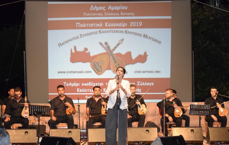 Μια μαγευτική βραδιά, με ποιοτική μουσική και μελωδίες από τον Παγκρήτιο Σύλλογο Καλλιτεχνών Κρητικής Μουσικής στην πλατεία της Βισταγής, απόλαυσαν όσοι παρευρέθηκαν την Τετάρτη 7 Αυγούστου , στη συναυλία που διοργάνωσε ο Δήμος Αμαρίου σε συνεργασία με τον Πολιτιστικό Σύλλογο Βισταγής.