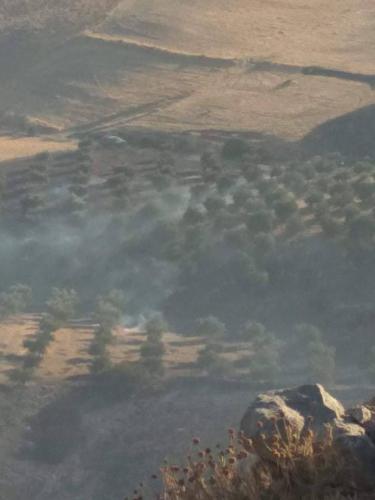 Tο μέτωπο της φωτιάς έκαψε χορτολιβαδική βλάστηση αλλά και ελαιοκαλλιέργειες.