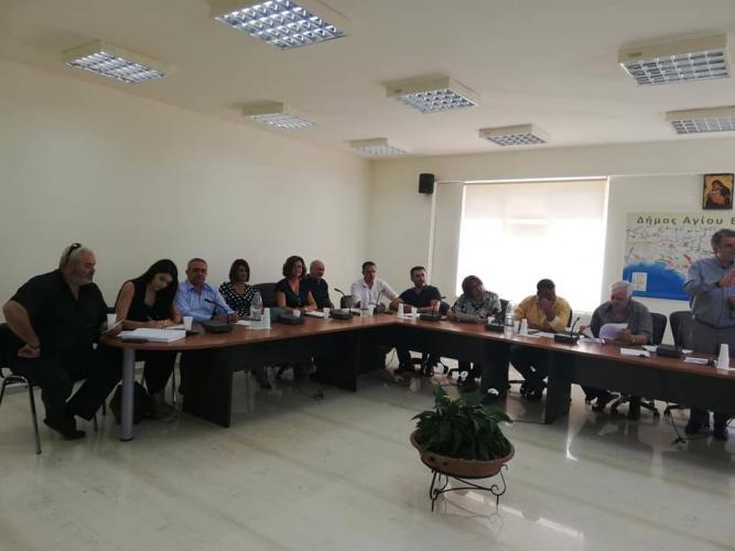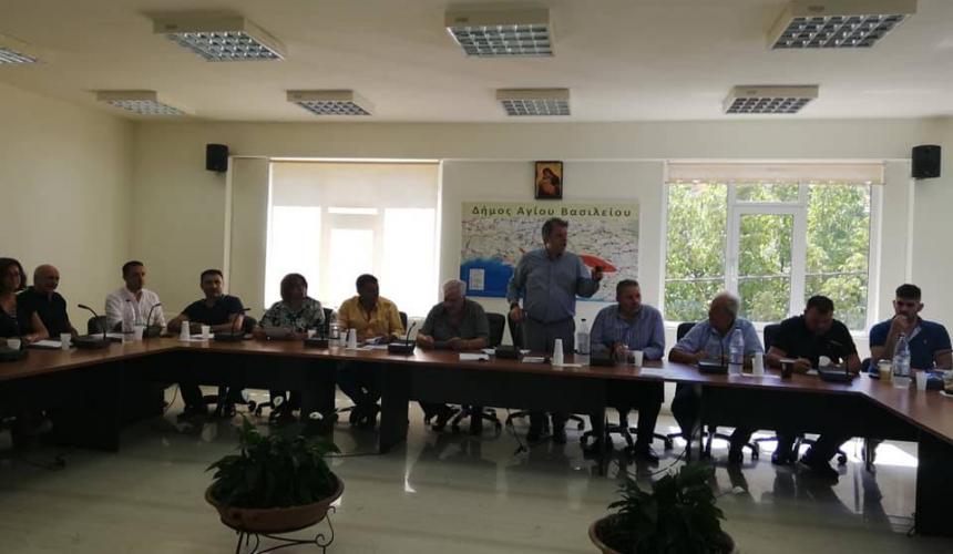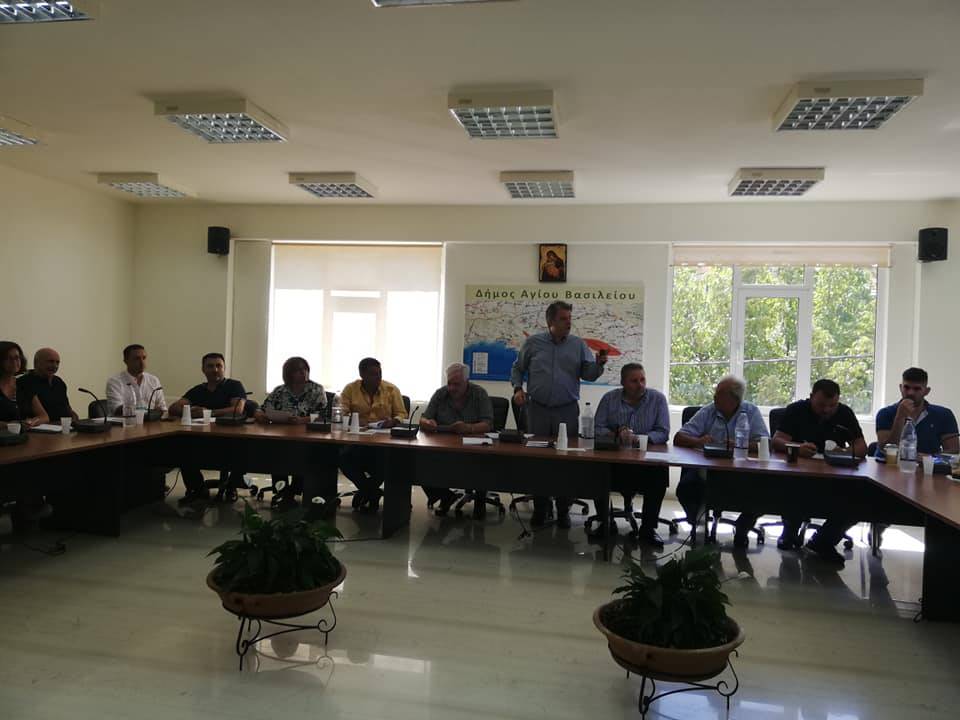 Σε κλίμα συναίνεσης και όπως επιβάλει ο πολιτικός πολιτισμός πραγματοποιήθηκε την Κυριακή 1η Σεπτεμβρίου η 1η συνεδρίαση του νέου Δημοτικού Συμβουλίου Δήμου Αγίου Βασιλείου. Η συνεδρίαση ξεκίνησε υπό την προεδρία του πρώτου σε σταυρούς στις πρόσφατες εκλογές, δημοτικού συμβούλου κ Λευτέρη Σηφάκη.