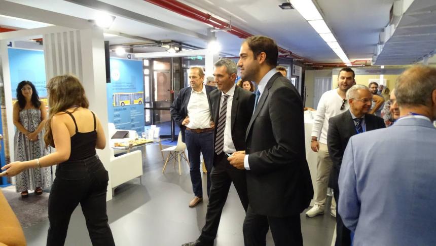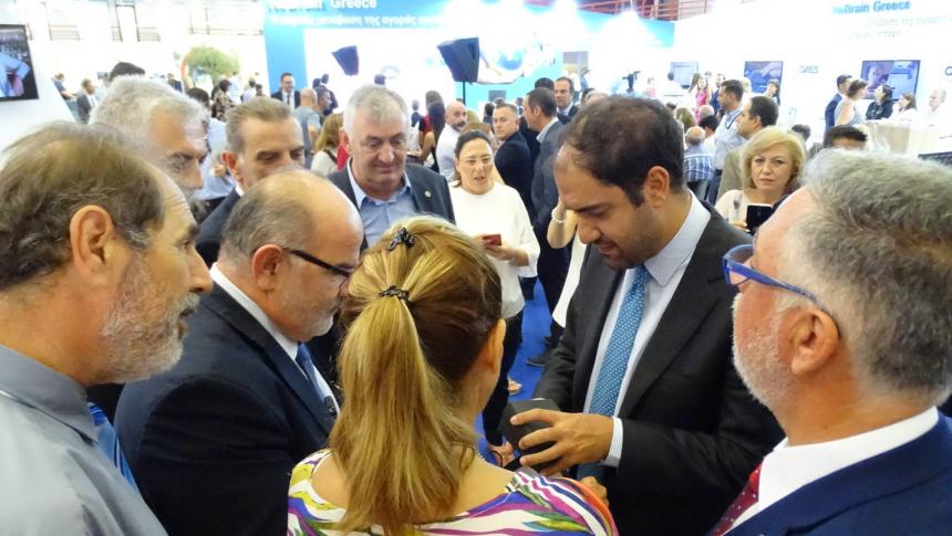Η ηγεσία του υπουργείου συνοδευόμενη από τον γενικό γραμματέα υποδομών,. Γιώργο Καραγιάννη και τον γενικό γραμματέα μεταφορών,. Νίκο Σταθόπουλο, επισκέφτηκε - μεταξύ άλλων - τα περίπτερα του ΤΕΕ, των ΤΡΑΙΝΟΣΕ / ΕΕΣΣΤΥ, της ΕΥΔΑΠ, της ΓΑΙΑΟΣΕ, της Εγνατίας Οδού, του ΟΑΣΑ και της ΓΣΕΒΕΕ.