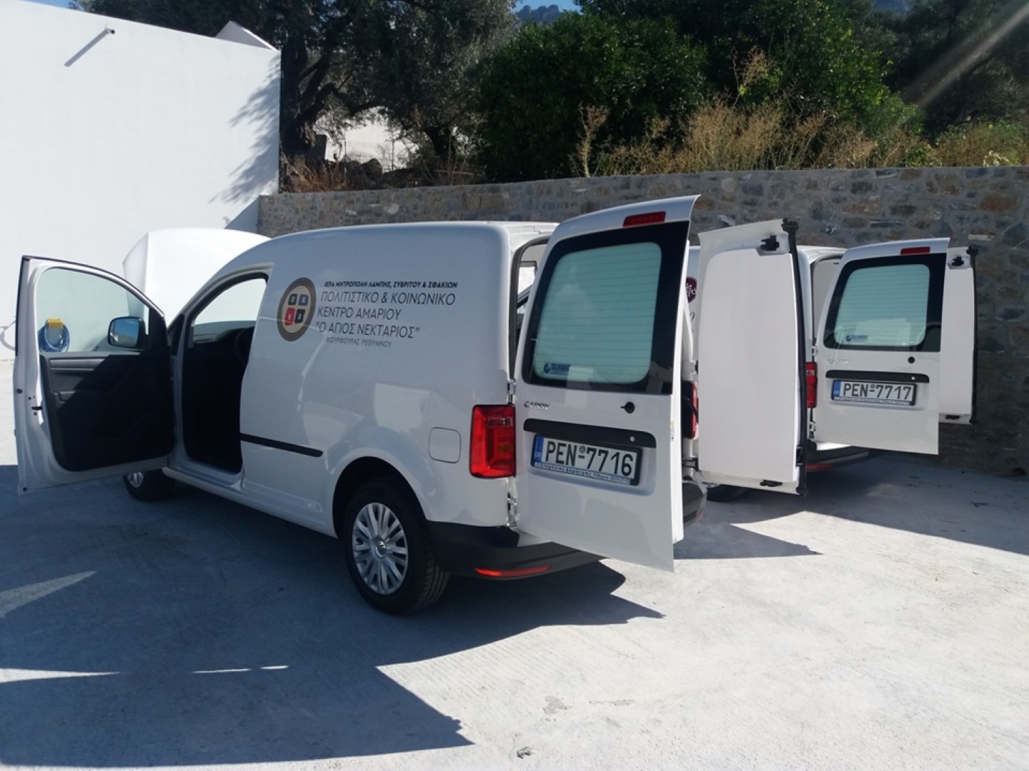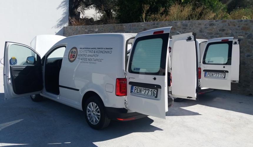 Για τις ανάγκες της καθημερινής μεταφοράς του φαγητού στα σπίτια των εμπεριστάτων από τις δύο επισιτιστικές δομές της Ιεράς Μητροπόλεως, δωρίθηκαν δύο καινούρια αυτοκίνητα, ειδικά μετασκευασμένα για το σκοπό αυτό, αξίας 43.000 ευρώ, ευγενής δωρεά του κοινωφελούς ιδρύματος ΤΙΜΑ.