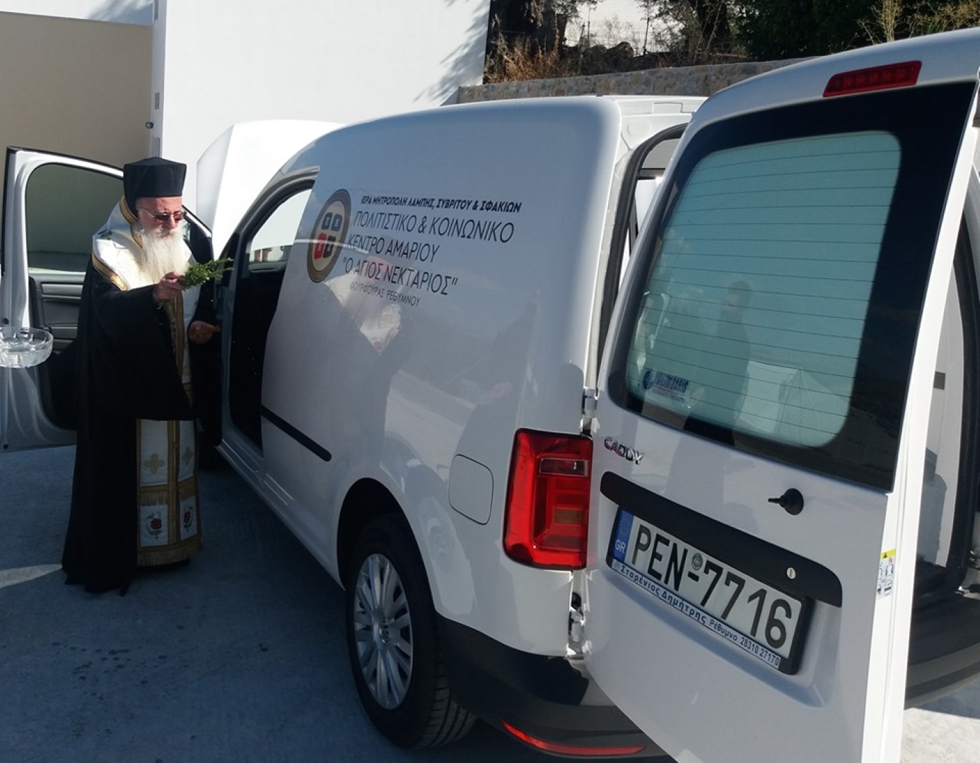 Ο Μητροπολίτης Λάμπης, Συβρίτου και Σφακίων κ.κ. Ειρηναίος τέλεσε τον αγιασμό και εξέφρασε την χαρά του για την ικανοποίηση του αιτήματος της τοπικής μας Εκκλησίας από το κοινωφελές ίδρυμα ΤΙΜΑ, που και κατά το παρελθόν υπήρξε αρωγός του κοινωνικού έργου της Ιεράς Μητροπόλεως.