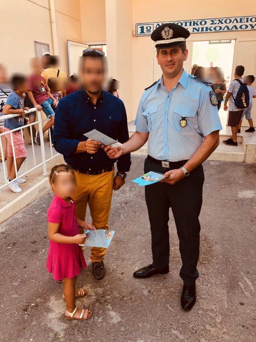 Ενημερωτικά φυλλάδια κυκλοφοριακής αγωγής και ευχές για μια καλή σχολική χρονιά μοίρασαν σήμερα (11.09.2019) το πρωί, αστυνομικοί σε γονείς και μικρούς μαθητές κατά την προσέλευση τους στα σχολικά συγκροτήματα του Ηρακλείου, του Λασιθίου, των Χανίων και του Ρεθύμνου, για την καθιερωμένη τελετή αγιασμού.