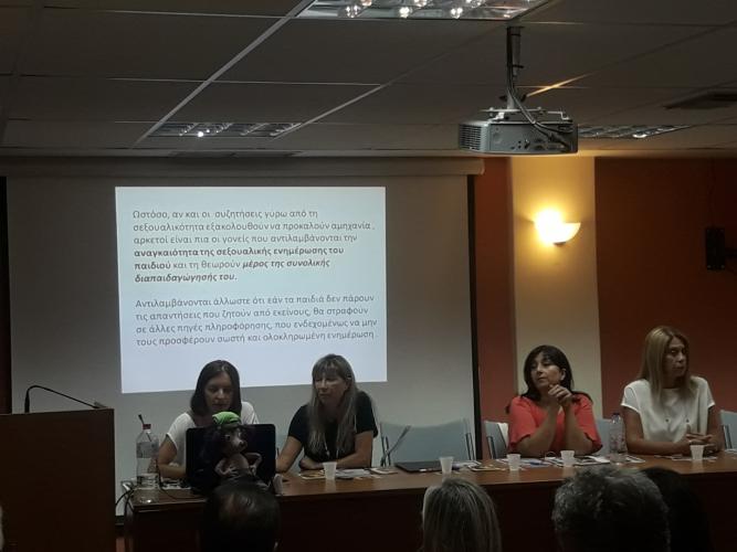 Την ίδια μέρα πραγματοποιήθηκε με μεγάλη επιτυχία η Εσπερίδα με θέμα «Σεξουαλική Αγωγή: Γέφυρα για τη σεξουαλική υγεία» όπου αξιόλογοι ομιλητές επισήμαναν τη σημαντικότητα της σεξουαλικής υγείας που προϋποθέτει σωστή ενημέρωση και ένταξη της σεξουαλικής αγωγής στα σχολεία όλων των βαθμίδων. Η εκδήλωση φιλοξενήθηκε στην αίθουσα συνεδριάσεων του «Ξενία» σε συνεργασία με το Πανεπιστήμιο Κρήτης – Τμήμα Φιλοσοφικών και Κοινωνικών Σπουδών όπου η κα Έλενα Βιταλάκη, μέλος της δημιουργικής ομάδας του Φρίξου, ΕΔΙΠ Παν/μίου Κρήτης κι ως εκπρόσωπος του Πανεπιστημίου Κρήτης παρουσίασε τον «Ρόλο της Γ/θμιας στη σεξουαλικη αγωγή». Από το Κέντρο Πρόληψης Π.Ε. Ρεθύμνης, η κα Κατερίνα Ζουρμπάκη, ψυχολόγος μίλησε για την «Οικογένεια και τη σεξουαλική διαπαιδαγώγηση». Η κα Αλεξάνδρα Βαονάκη, Ψυχολόγος και Προϊσταμένη του Κ.Σ.Υ.Γ.Θ.Β.Δ. Ρεθύμνου τοποθετήθηκε σε θέματα που αφορούν την «Έμφυλη βία και σεξουαλικότητα». Η κα Άννα Ελευθεριάδου-Γκίκα, εκπρόσωπος του Ιατρικού συλλόγου κι Αντιδήμαρχος Κοινωνικής Πολιτικής και Παιδείας ενημέρωσε το κοινό για το «ΑIDS, επισημαίνοντας το τέλος μιας εποχής». Την εμπειρία τους όσο αφορά τη «Σεξουαλική αγωγή ως μάθημα στη Γ΄ Γυμνασίου στο Πειραματικό Γυμνάσιο του Πανεπιστημίου Κρήτης» μοιράστηκε η κα Μαργαρίτα Γερούκη, μέλος της δημιουργικής ομάδας του Φρίξου, εκπαιδευτικός και τέως Σχολική Σύμβουλος μαζί με τον κ. Μανώλη Αναγνωστάκη, εκπαιδευτικό, τονίζοντας ότι είναι το μοναδικό γυμνάσιο που το πρόγραμμα σεξουαλικής αγωγής έχει ενταχθεί στο ωρολόγιο πρόγραμμα του σχολείου. Τέλος, η κα Σιμιτζή-Δέλλα Ελευθερία, ΣΕΕ Προσχολικής Αγωγής παρουσίασε το «Πρόγραμμα Φρίξος, προσχολικής και πρώτης σχολικής ηλικίας» επισημαίνοντας τη σημαντικότητα εφαρμογής του προγράμματος στις μικρές ηλικίες.