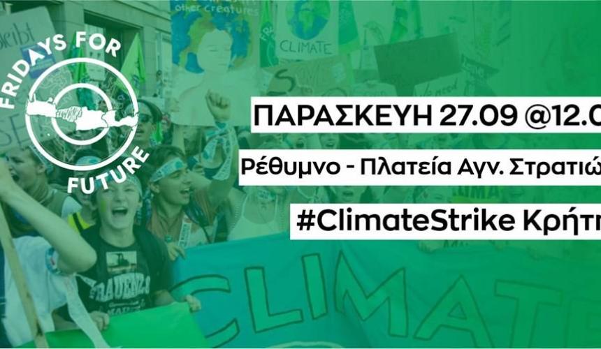Η συντονιστική επιτροπή Fridays For Future Κρήτης προσκαλεί όλους τους δημότες, πολίτες, συλλογικότητες και φορείς του Ρεθύμνου και της Κρήτης στην πρώτη μεγάλη ειρηνική πορεία στην Κρήτη στα πλαίσια του παγκόσμιου κινήματος Fridays For Future για την κλιματική αλλαγή.
