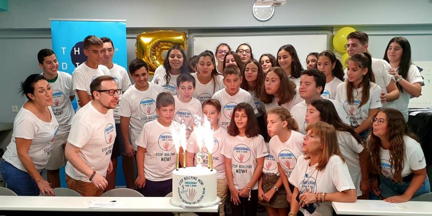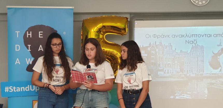 Τα Κέντρα Αγγλικών “Ασημένια Φήταμ” γιορτάζουν φέτος τα 5 πρώτα χρόνια της επιτυχημένης Εκστρατείας τους Κατά του Σχολικού Εκφοβισμού. Μία πενταετία ενεργού δράσης, αφύπνισης και πρόληψης, έμπρακτης στήριξης κοινωνικών δομών και φιλανθρωπικών οργανώσεων, πλαισιωμένη από διεθνείς κι εγχώριες διακρίσεις και βραβεύσεις. Με αυτή την αφορμή, διοργάνωσαν μία επετειακή συνάντηση της Ομάδας τους, Πρεσβευτών και Εθελοντών Anti-Bullying, το Σάββατο 31 Αυγούστου. Η συνάντηση πραγματοποιήθηκε ανήμερα της 22ης επετείου από την απώλεια της Πριγκίπισσας Νταϊάνα, της οποίας το βραβείο έχει απονεμηθεί 2 φορές σε μέλη της Ομάδας στο πρόσφατο παρελθόν. Κατά τη διάρκεια της συνάντησης, οι αρχηγοί της Ομάδας, Μιχάλης Λεντζάκης και Ηλίας Δεβεράκης, τίμησαν με παρουσιάσεις τους τη μνήμη της αδικοχαμένης Πριγκίπισσας, καθώς επίσης και την 90ή επέτειο από τη γέννηση της Άννας Φρανκ. Σε αυτό το πλαίσιο, οι εθελόντριες Χαρά Βιδιαδάκη, Μαριάννα Μυγιάκη και Αντωνία Κουλάκη διάβασαν επιλεγμένα αποσπάσματα από το ιστορικό "Ημερολόγιο της Άννας Φρανκ". Η Ομάδα μοιράστηκε πολύτιμες αναμνήσεις από αυτά τα 5 χρόνια, πραγματοποίησε ολοκαίνουργιες εξωτερικές Anti-Bullying δραστηριότητες στην αυλή του σχολείου και φυσικά δεν παρέλειψε να σβήσει την επετειακή της τούρτα!