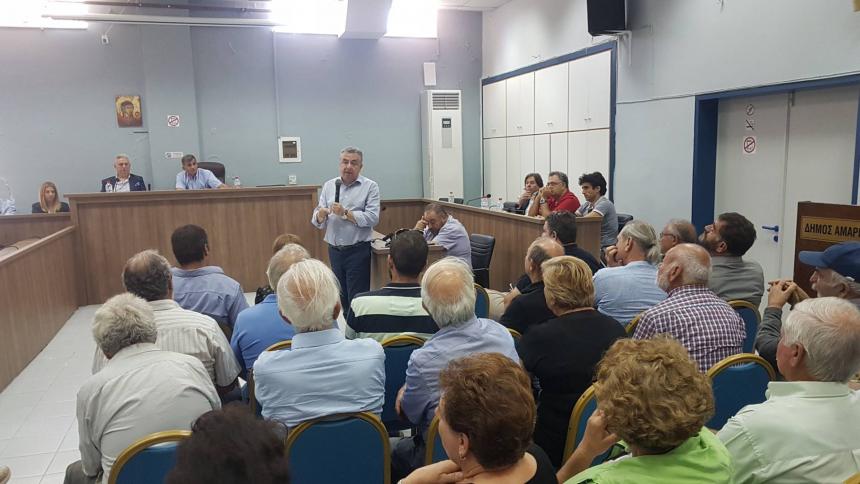 Την Πέμπτη 3 Οκτωβρίου πραγματοποιήθηκε στο Δημαρχείο Αμαρίου Ενημερωτική Συνάντηση - Συζήτηση για την πορεία του έργου Φράγματος Πλατύ και την εκπόνηση μελέτης του Φράγματος Ελενών – Γερακαρίου. Ο Γενικός Διευθυντής Σχεδιασμού Έργων Υποδομής και Διαχείρισης Τεχνικών Έργων του Υπουργείου Υποδομών & Μεταφορών κ. Αντώνιος Κοτσώνης, επικεφαλής του κλιμακίου του Υπουργείου Υποδομών, έδωσε απαντήσεις σε όλα τα ερωτήματα των δημοτών και δεσμεύτηκε ότι κατά την εκπόνηση της προμελέτης του Φράγματος Ελενών – Γερακαρίου θα ληφθεί σοβαρά υπ’ όψιν το υπόμνημα που κατέθεσε ο Σύμβουλος Κοινότητας Γερακαρίου κ. Νικόλαος Παλιεράκης, στο οποίο αναγράφονται οι προβληματισμοί των κατοίκων για την αναγκαιότητα κατασκευής ή μη του Φράγματος Ελενών – Γερακαρίου.