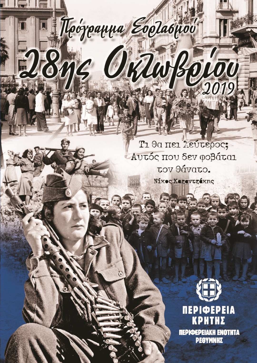 Ώρα 12:00 Παρέλαση Πολιτικών, Στρατιωτικών Τμημάτων και Σωμάτων Ασφαλείας με τη συμμετοχή της Δημοτικής Φιλαρμονικής Ρεθύμνης.