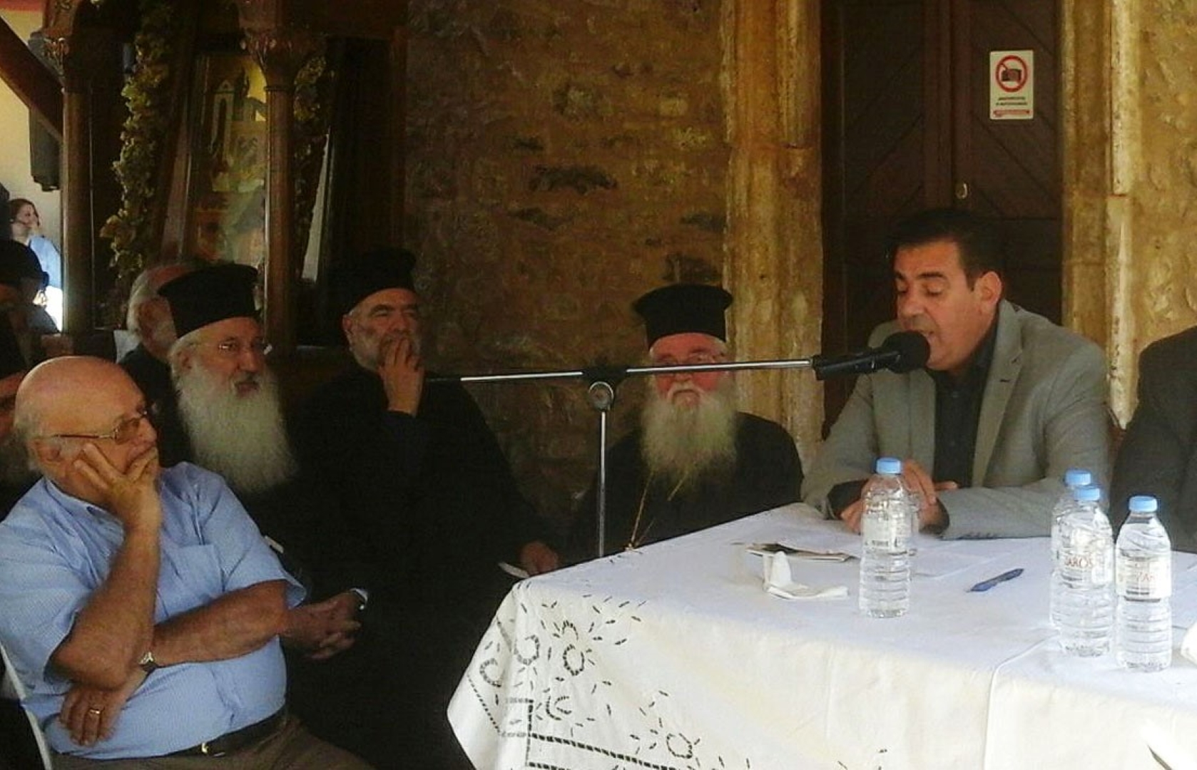 Μετά τα Εγκαίνια του Κειμηλιαρχείου, στον αύλειο χώρο της Μονής Μυριοκεφάλων, πραγματοποιήθηκε η παρουσίαση του βιβλίου του ελλογιμ. κ. Νικολάου Δερεδάκη, διδασκάλου, με τίτλο «Ο Επίσκοπος Κισάμου και Σελίνου Άνθιμος Λελεδάκης (1903-1935) κατά το αρχειακό υλικό του Πρωτ. Ιωάννου Λελεδάκη», εκδόσεως της Ενορίας Μυριοκεφάλων. Το βιβλίο παρουσίασε ο ελλογιμ. κ. Κωστής Ηλ. Παπαδάκης, φιλόλογος-θεολόγος-συγγραφέας, ενώ την εκδήλωση συντόνισε ο ελλογιμ. κ. Γεώργιος Παπαδόσηφος, θεολόγος. Κατά την εκδήλωση αυτή απηύθυναν χαιρετισμούς και τοποθετήσεις ο Σεβ. Μητροπολίτης Ρεθύμνης και Αυλοποτάμου κ. Ευγένιος, ο Πανοσιολ. Αρχιμ. Ειρηναίος Μπατσάκης, εκπρόσωπος του Σεβ. Μητροπολίτου Κισάμου και Σελίνου κ. Αμφιλοχίου, ο Αιδεσιμολ. Πρωτ. του Οικουμενικού Θρόνου και εφημέριος Μυριοκεφάλων π. Ιωάννης Λελεδάκης, εκπρόσωπος της οικογένειας Λελεδάκη, η κ. Αλεξάνδρα Καρπέτα, φιλόλογος, καθώς και ο συγγραφέας κ. Νικόλαος Δερεδάκης.