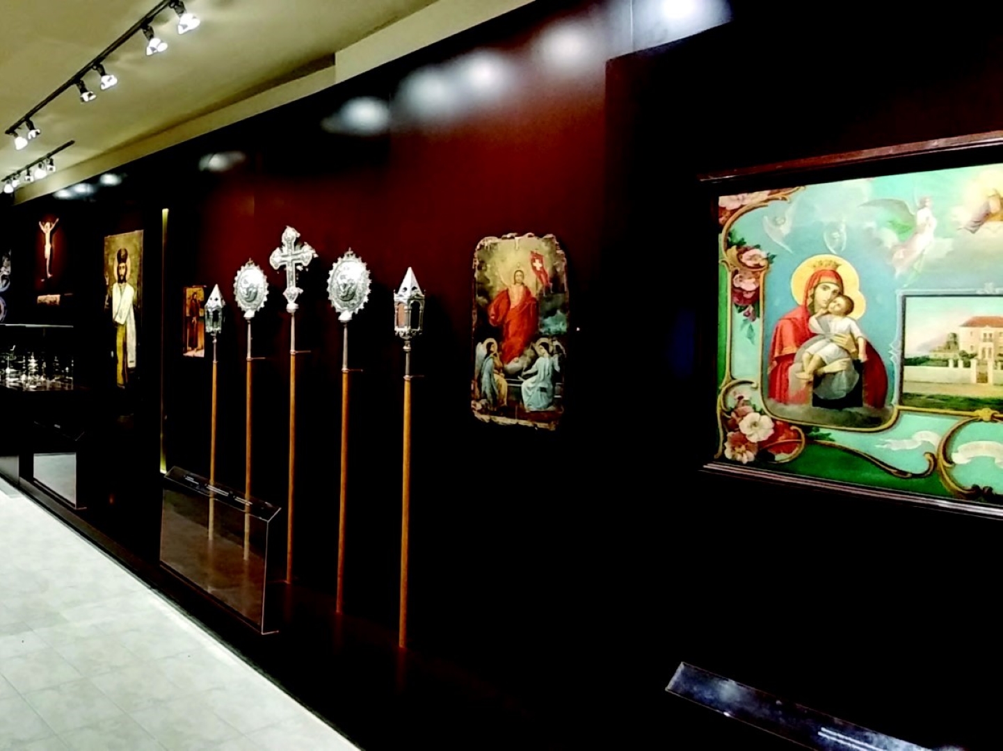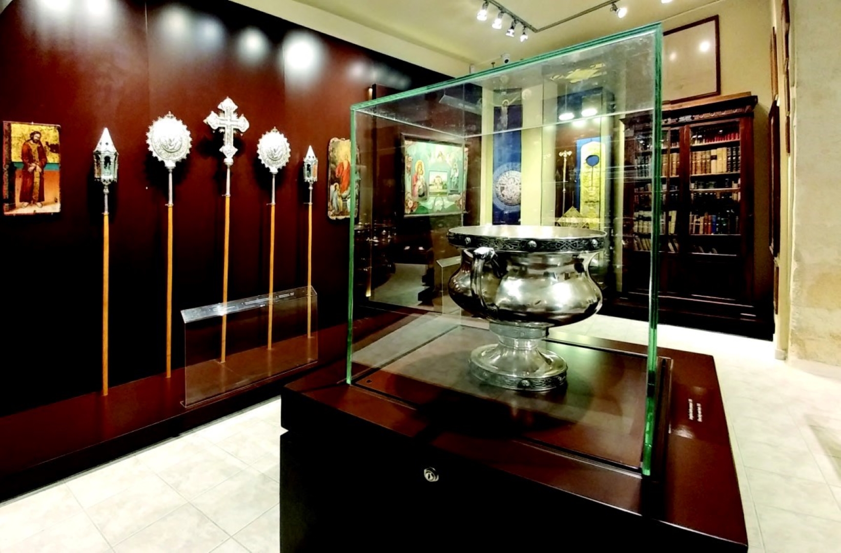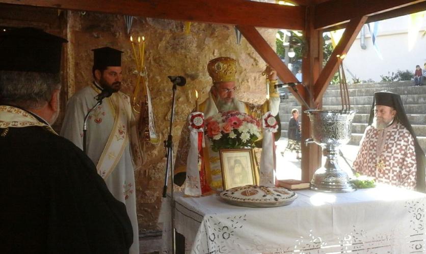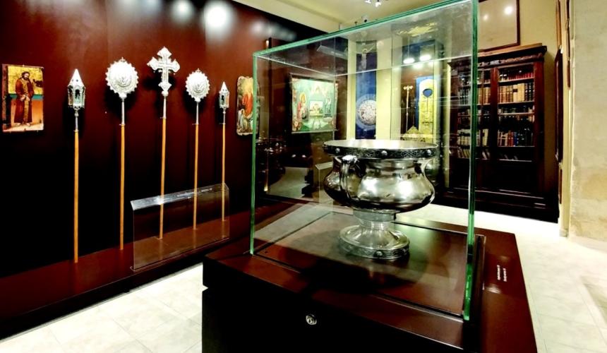 Ακολούθως ο Σεβασμιώτατος τέλεσε τον Αγιασμό για τα Εγκαίνια του Κειμηλιαρχείου της Μονής, το οποίο δημιουργήθηκε πρόσφατα με πρωτοβουλία του ιδίου καθώς και του Αιδεσιμολ. Πρωτοπρεσβυτέρου του Οικουμενικού Θρόνου Ιωάννου Λελεδάκη, Εφημερίου της Ενορίας Μυριοκεφάλων. Παρών ήταν και ο επικεφαλής της ομάδας που πραγματοποίησε το έργο, ο συντηρητής αρχαιοτήτων και έργων τέχνης-μουσειολόγος κ. Ηλίας Παπαγεωργίου, στον οποίο ο Επίσκοπός μας απένειμε έπαινο της Μητροπόλεως. Σημειωτέον, ότι ο κ. Παπαγεωργίου και οι συνεργάτες του είναι οι δημιουργοί και άλλων δύο εξαίρετων εκθεσιακών χώρων στη Μητρόπολή μας, του νέου Μουσείου της Ιεράς Μονής Αρκαδίου καθώς και του Κειμηλιαρχείου της Ιεράς Μονής Τιμίου Προδρόμου Ατάλης-Μπαλή.