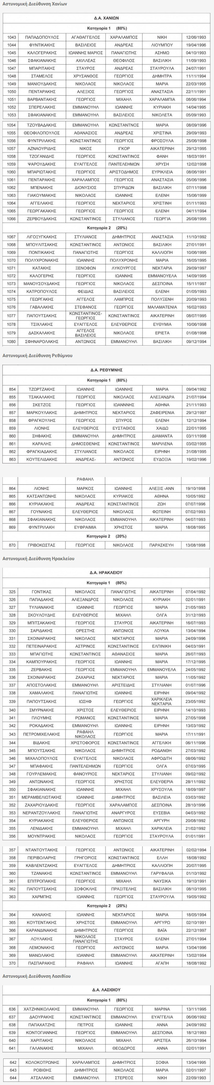 Στις Αστυνομικές Διευθύνσεις της Κρήτης προσλαμβάνονται οι ακόλουθοι: