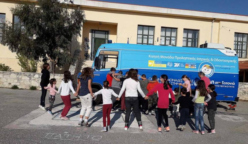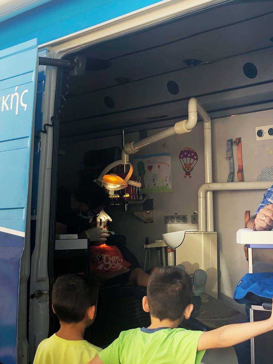 Συγκεκριμένα, οι εθελοντές γιατροί του προγράμματος επισκέφθηκαν την Πέμπτη 24/10/ 2019 με κινητό ιατρείο, τα δημοτικά και νηπιαγωγεία Μελάμπων και Αγία Γαλήνης και πραγματοποίησαν οδοντιατρικό έλεγχο, συνολικά σε 80 μαθητές περίπου.