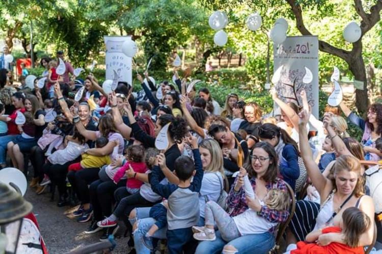 Και φύτεψαν ένα σποράκι! Μια ιδέα! Το σποράκι μπήκε βαθιά στη γη, και βρήκε έδαφος γόνιμο κι εύφορο. Και φύτρωσε, κι έγινε δεντράκι, και πέταξε 1600 κλαδιά, την επόμενη χρονιά 2720, την τρίτη 2.900 κι έγινε δέντρο μεγάλο, μέχρι που έφτασε να μετρήσει πάνω από 4.000 κλαδιά. Το Δέντρο της Ζωής! Το Δέντρο της Θηλάζουσας! Κάθε κλαδί και μια μαμά! Μια καρδιά! Ένα μωρό! Ένας θηλασμός, την ημέρα του Δημόσιου Ταυτόχρονου θηλασμού.