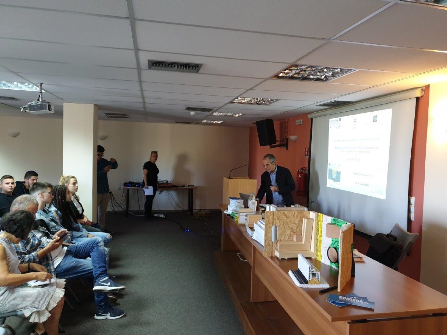 Έγιναν παρουσιάσεις που αφορούσαν στη σημασία της Τεχνικής Επαγγελματικής Εκπαίδευσης και ειδικότερα των αποφοίτων του Τομέα Δομικών Έργων, Αρχιτεκτονικού Σχεδιασμού και δομημένου περιβάλλοντος από την κ. Ε. Λεοντάκη ενώ ο κος Παλαντζάς αναλυτικά αναφέρθηκε στο πρότυπο του Παθητικού κτιρίου με όλες τις απαραίτητες τεχνικές, τα πιστοποιημένα υλικά, τη διαδικασία πιστοποίησης, τις υπολογιστικές μεθόδους και τα οικονομικά των κατασκευών των παθητικών και βιοκλιματικών κτιρίων. Ακολούθως ο κ. Ν. Ζωγραφάκης παρουσίασε την εξοικονόμηση ενέργειας και την ενεργειακή αποδοτικότητα στα Δημόσια Κτίρια της Περιφέρειας Κρήτης καθώς και το έργο εδαφικής συνεργασίας Ελλάδας – Κύπρου «ΣΥΝΕΡΓΕΙΝ» που αφορά στο ίδιο θέμα. Τα παθητικά και βιοκλιματικά κτίρια είναι απολύτως κατάλληλα για το κλιματικό περιβάλλον της Κρήτης προσεγγίζοντας σχεδόν μηδενική ενεργειακή κατανάλωση και πολύ φθηνότερη λειτουργία διασφαλίζοντας συγχρόνως υψηλό επίπεδο θερμικής και οπτικής άνεσης και λειτουργικότητας, γι’ αυτό απαιτούνται συντονισμένες προσπάθειες των αρμοδίων φορέων και πολιτών για πραγματοποίηση περισσότερων παρόμοιων έργων παθητικών κτιρίων στην Κρήτη.