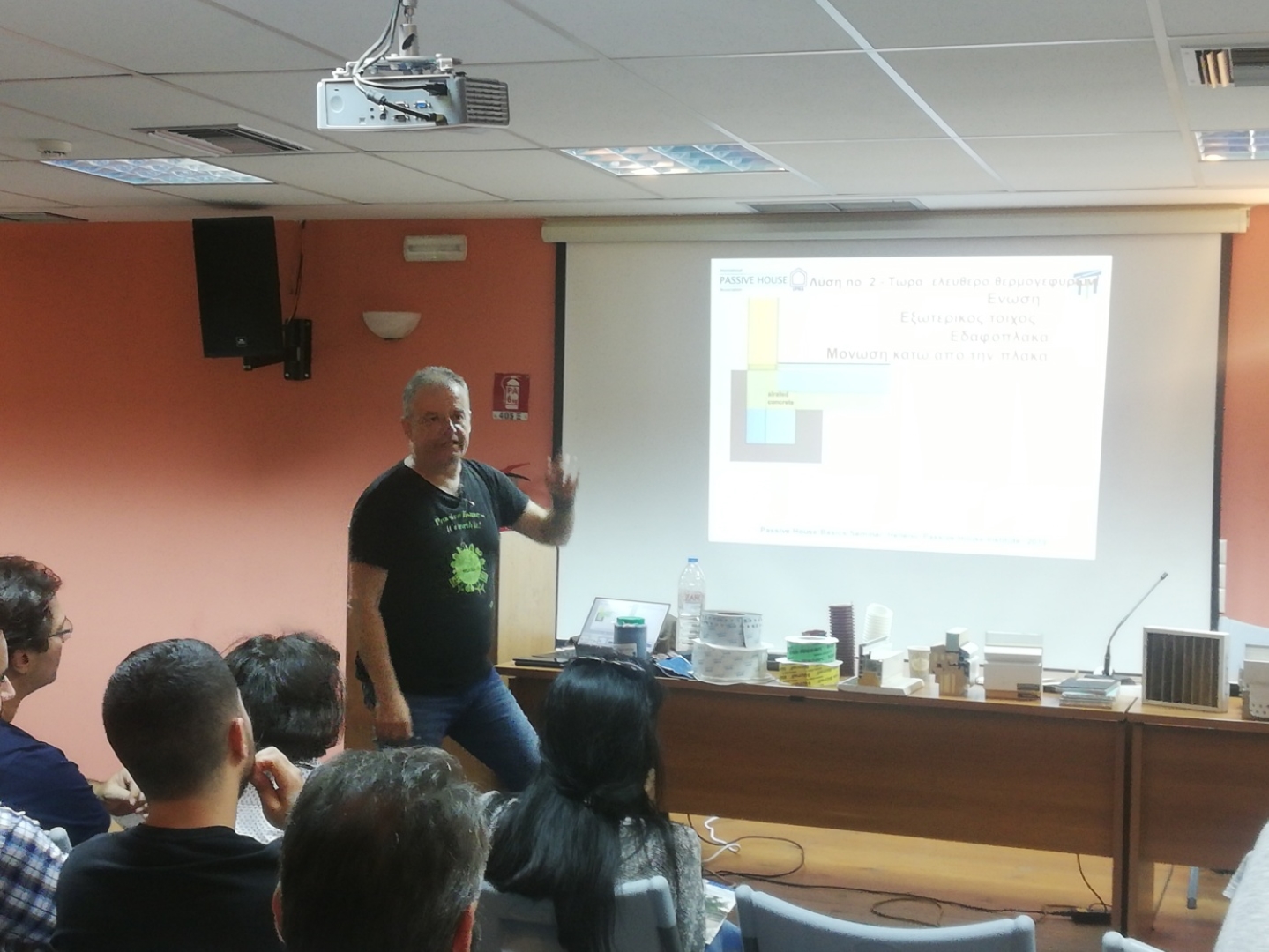 Να θυμίσουμε ότι τα κτίρια χαμηλής ενεργειακής κατανάλωσης (Near Zero Energy Buildings) είναι βάση Ευρωπαϊκής Οδηγίας άμεση προτεραιότητα όσον αφορά τα νέα κτίρια αλλά και ως αναβάθμιση για τα υφιστάμενα. Το πρότυπο των παθητικών κτιρίων αφορά σε κτίρια που θα χρειάζονται ελάχιστη ενέργεια για τις ανάγκες ψύξης και θέρμανσης. Ο κ. Παλλατζάς ανέπτυξε τον τρόπο με τον οποίο τα παθητικά κτίρια μπορούν να το επιτύχουν, τις μεθόδους για αεροστεγανότητα, μόνωση, αποφυγή θερμογεφυρών, τον μηχανικό αερισμό με ανάκτηση θερμότητας καθώς και τα κόστη όλων αυτών, όπου σε μία νέα κατασκευή είναι σχεδόν ίδια με μίας συμβατικής κατασκευής. Επίσης ενημέρωσε για τα σεμινάρια που διοργανώνει το Ινστιτούτο Παθητικών κτιρίων Ελλάδας για Σχεδιαστές παθητικών κτιρίων (Πολιτικούς και Μηχανολόγους Μηχανικούς) καθώς και για Τεχνικούς παθητικών κτιρίων (Εξειδικευμένους τεχνικούς) και για τον τρόπο Πιστοποίησης.
