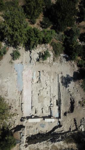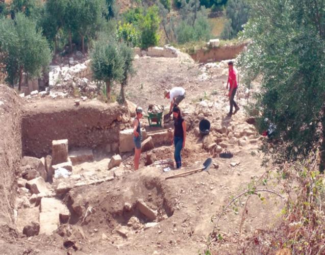 Ο ίδιος συνέχισε λέγοντας: «Νότια του κρασπέδου του πλακόστρωτου δρόμου προς την ακρόπολη ανασκάπτεται κατά την τελευταία τριετία μεγάλο οικοδόμημα - οικία, με πολλαπλούς χώρους (δωμάτια) που επικοινωνούν μεταξύ τους. Από τα έως σήμερα ανασκαφικά δεδομένα η κύρια φάση του οικοδομήματος χρονολογείται στον 1ο π.Χ./1ο μ.Χ. αιώνα και έως τα μέσα του 2ου αι. μ.Χ. Δεν αποκλείεται ορισμένοι τοίχοι του να χρονολογούνται στα ελληνιστικά χρόνια, πράγμα που θα φανεί με την ολοκλήρωση της ανασκαφής. Επάνω στο κατεστραμμένο –μάλλον από σεισμό − οικοδόμημα υπήρχαν υπολείμματα μιας ύστερης ρωμαϊκής φάσης, αρκετά κατεστραμμένης από τις υστερότερες μεσαιωνικές επεμβάσεις και την έντονη καλλιέργεια.»