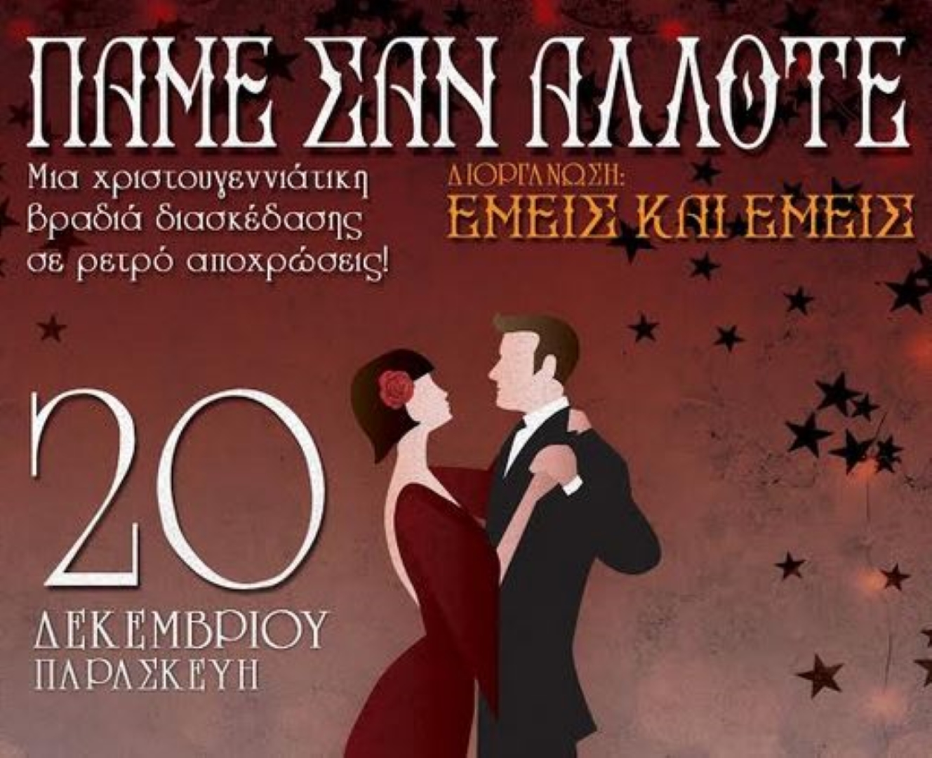 Την Παρασκευή 20 Δεκεμβρίου στις 10 το βράδυ, ελάτε να ζήσουμε μαζί μια ξεχωριστή Χριστουγεννιάτικη βραδιά, σε ρετρό αποχρώσεις!