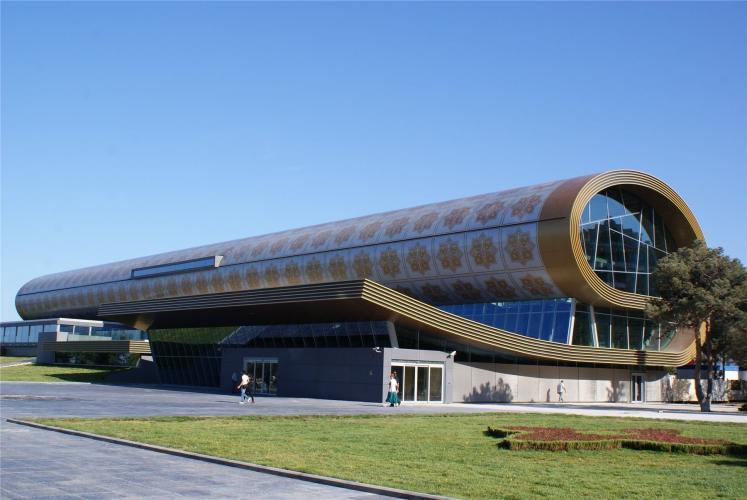 Σ΄ ένα υπέροχο φουτουριστικό αρχιτεκτονικό κυλινδρικό κτήριο που μοιάζει με τυλιγμένο χαλί, στεγάζεται το ΜΟΥΣΕΙΟ ΧΑΛΙΩΝ. Τα χαλιά συνοδεύουν τη ζωή των Αζέρων. Η τέχνη στην κατασκευή χαλιών είναι κάτι το ξεχωριστό στο ΑΖΕΡΜΠΑΪΤΖΑΝ.