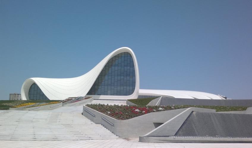Ε, κάπου, σε κουράζει το πετρέλαιο, η φλόγα, το αναπτυσσόμενο ραγδαία ΜΠΑΚΟΥ, οι ελικοειδείς ουρανοξύστες, οι Flame Towers που κυριαρχούν στη πόλη, τότε περπατώντας εξωτερικά από το φουτουριστικό πολιτιστικό κέντρο που φέρει το όνομα του HEYDAR ALIYEV, ένα κτήριο που σου φέρνει στο μυαλό ένα γιγάντιο λευκό σαλιγκάρι, ίσως το μεγαλύτερο αριστούργημα της αρχιτεκτονικής στο ΜΠΑΚΟΥ, το οποίο περιλαμβάνει ΠΙΝΑΚΟΘΗΚΗ, ΟΠΕΡΑ, ΕΚΘΕΣΙΑΚΟ ΚΕΝΤΡΟ.