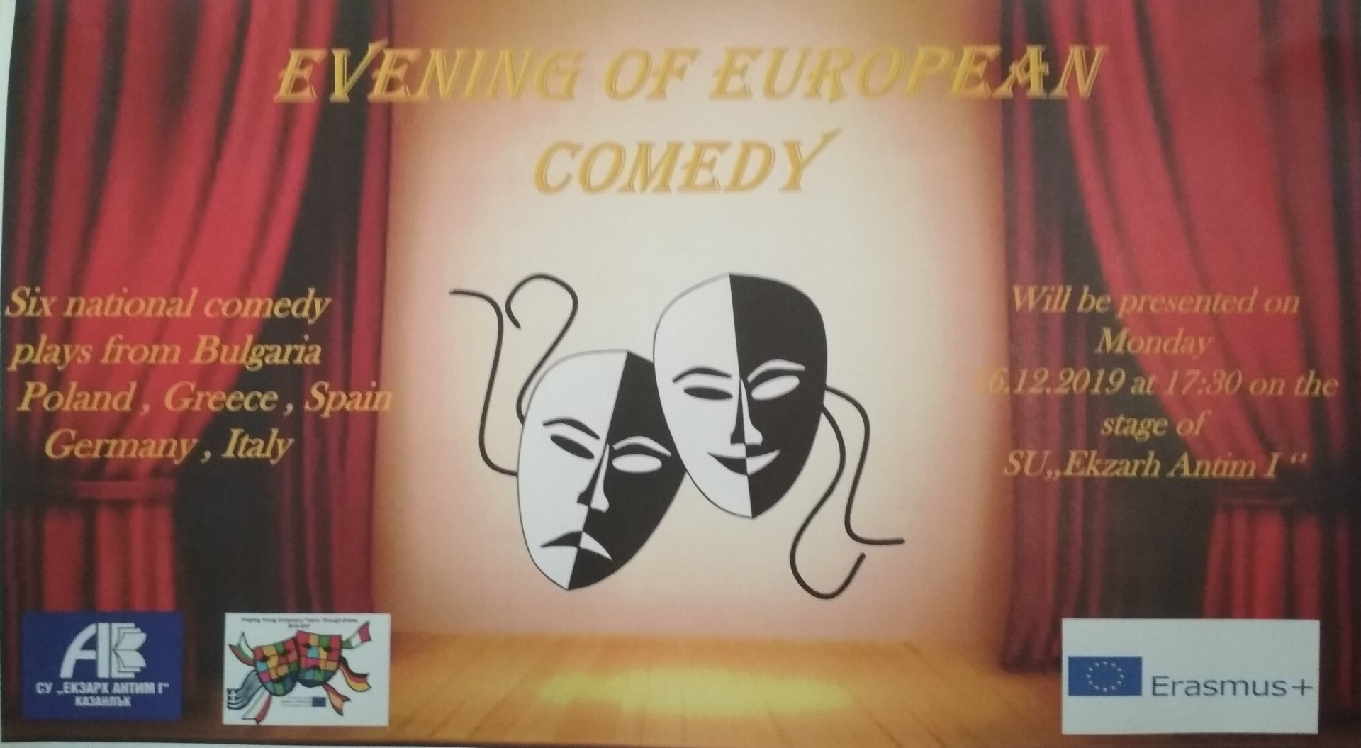 Το ταξίδι πραγματοποιήθηκε με αφορμή τη συμμετοχή του σχολείου στο Ευρωπαϊκό πρόγραμμα Σχολικών Συμπράξεων Erasmus+ ΚΑ229 με τίτλο «Shaping young Europeans’ Future through Drama». Συντονίστρια του προγράμματος είναι η Βουλγαρία και συμμετέχουν σε αυτό άλλα πέντε σχολεία από την Ισπανία (Σεβίλλη), την Ιταλία (Μπάρι), την Πολωνία (Κρακοβία), τη Γερμανία (Σόλιγκεν) και την Ελλάδα (Ρέθυμνο). Οι εταίροι του προγράμματος ενώνονται γύρω από την ιδέα ότι το θέατρο, μέσα στην εκπαιδευτική διαδικασία, μπορεί να αποτελέσει ένα ελκυστικό και αποτελεσματικό μέσο για τη διαμόρφωση του μέλλοντος των νέων της Ευρώπης. Ως κύριο στόχο του το πρόγραμμα έχει, μέσω του δράματος και της δημιουργικής διδασκαλίας και μάθησης, την καλλιέργεια τόσο της δημιουργικότητας και της κοινωνικότητας όσο και δεξιοτήτων για την ευαισθητοποίηση, την ανάληψη της κοινωνικής ευθύνης και την ενεργό δραστηριοποίηση των μαθητών ως ενεργών πολιτών της Ευρώπης. Μέσω ποικίλων δραστηριοτήτων διαφορετικοί πολιτισμοί και άνθρωποι θα έρθουν σε επικοινωνία και θα ενδυναμώσουν την Ευρωπαϊκή τους ταυτότητα.