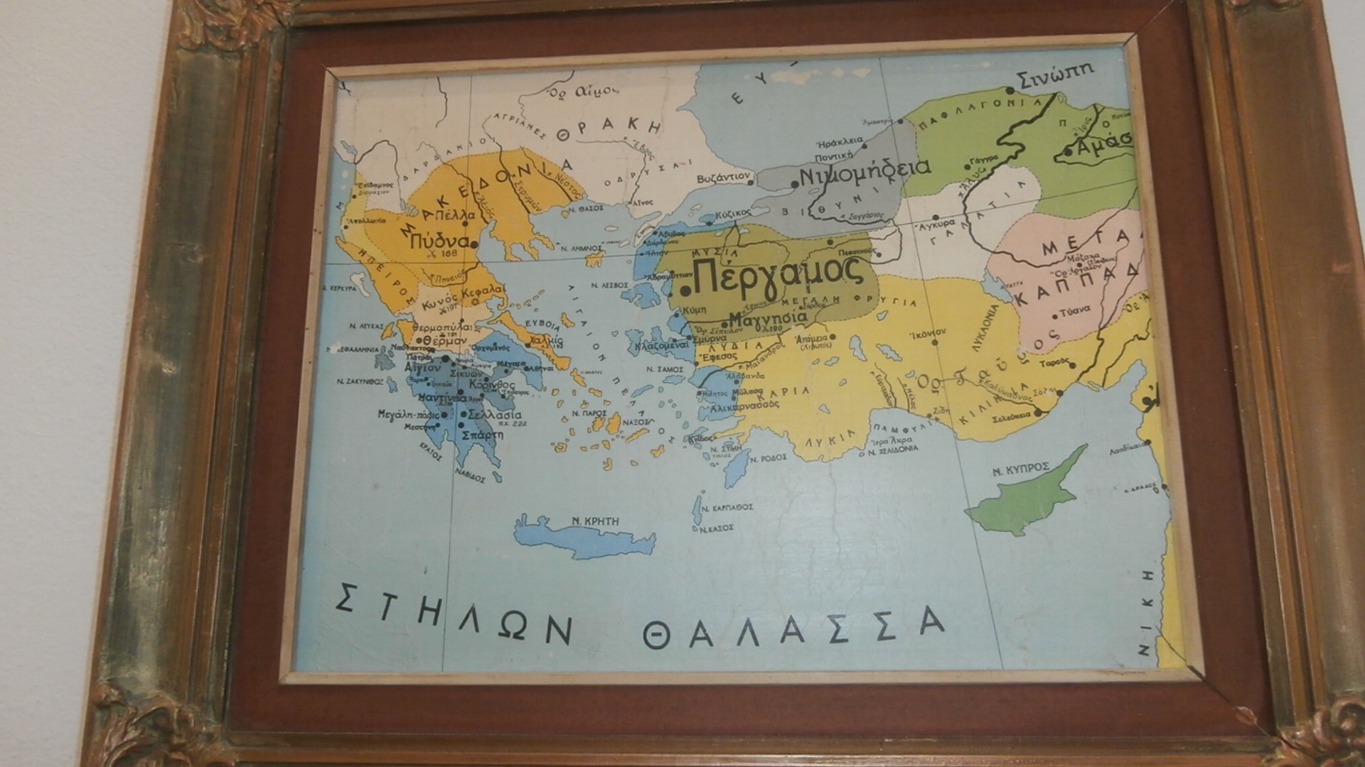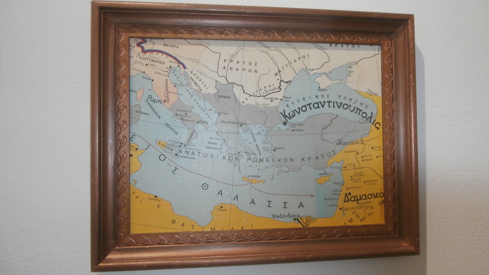Πρόκειται για παλιούς χάρτες του σχολείου που είχαν σχιστεί και καταστραφεί κατά το μεγαλύτερο τους μέρος, από τους οποίους διέσωσαν ορισμένα κομμάτια και τα έβαλαν σε κορνίζα, ώστε να γίνουν ‘έργα τέχνης’ και να πάρουν τη θέση που τους αξίζει. Τα εν λόγω έργα ενθουσίασαν το κοινό, που τη μια ταξίδευε μέσω των χαρτών στη ‘Βυζαντινή Αυτοκρατορία’, την άλλη στη ‘Ρωμαϊκή’, την άλλη στην ‘Αρχαία Ελλάδα’ και την άλλη στον μαγευτικό κόσμο της ‘Ελληνικής Μυθολογίας’.