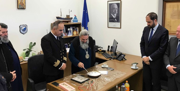 Μετά την τελετή του αγιασμού των υδάτων, ο Μητροπολίτης Ευγένιος και οι Αρχές του τόπου έκοψαν τη βασιλόπιτα του Λιμενικού Σώματος.