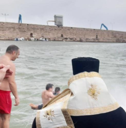 Λίγοι και τολμηροί αψήφησαν το κρύο και τα κύματα και βούτηξαν στα παγωμένα νερά για να ανασύρουν τον Τίμιο Σταυρό.Τα κατάφερε ο νεαρός Χρήστος από την Κέρκυρα, στον οποίο ο Επίσκοπός προσέφερε ένα χρυσό επιστήθιο σταυρό.