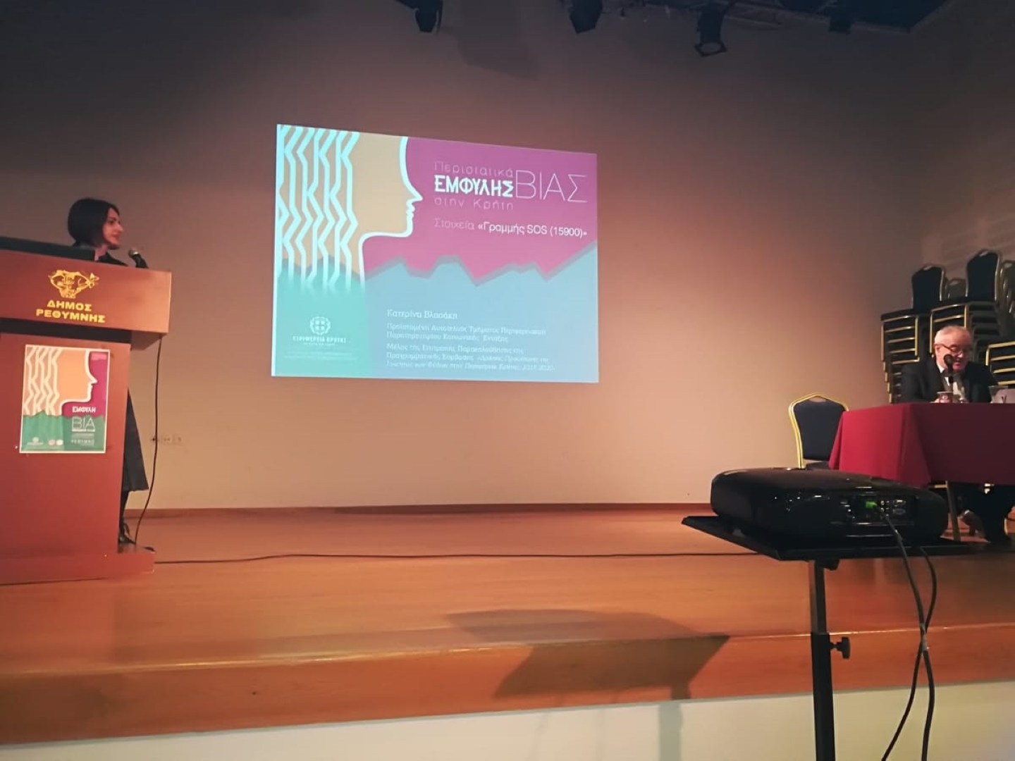 Η προϊσταμένη του Τμήματος Κοινωνικής Αλληλεγγύης της Δ/νσης Δημόσιας Υγείας και Κοινωνικής Μέριμνας Π.Ε. Ρεθύμνου, Μαρκάκη Καλλιόπη, αναφέρθηκε στη βιωμένη εμπειρία μίας κακοποιημένης γυναίκας και στη βάση αυτής, ανέλυσε τις κοινωνικές αναπαραστάσεις που προκαλούν και αναπαραγάγουν την έμφυλη βία.