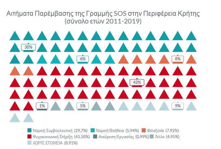 Τα παραπάνω στοιχεία δείχνουν ότι όλο και περισσότερες γυναίκες στην Κρήτη σπάνε τη σιωπή τους αναζητώντας βοήθεια, γεγονός που τροφοδοτεί την αναγκαιότητα υποστήριξης και ενίσχυσης των αντίστοιχων δομών στην Κρήτη ειδικότερα των υπηρεσιών ψυχοκοινωνικής υποστήριξης, σύμφωνα με τα παρακάτω στοιχεία: