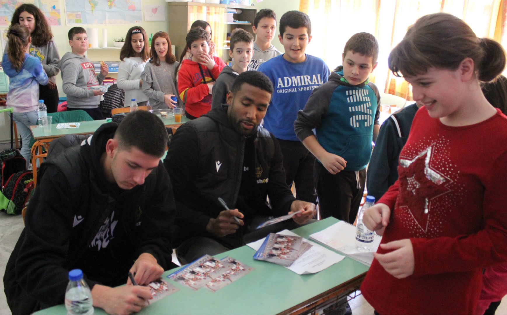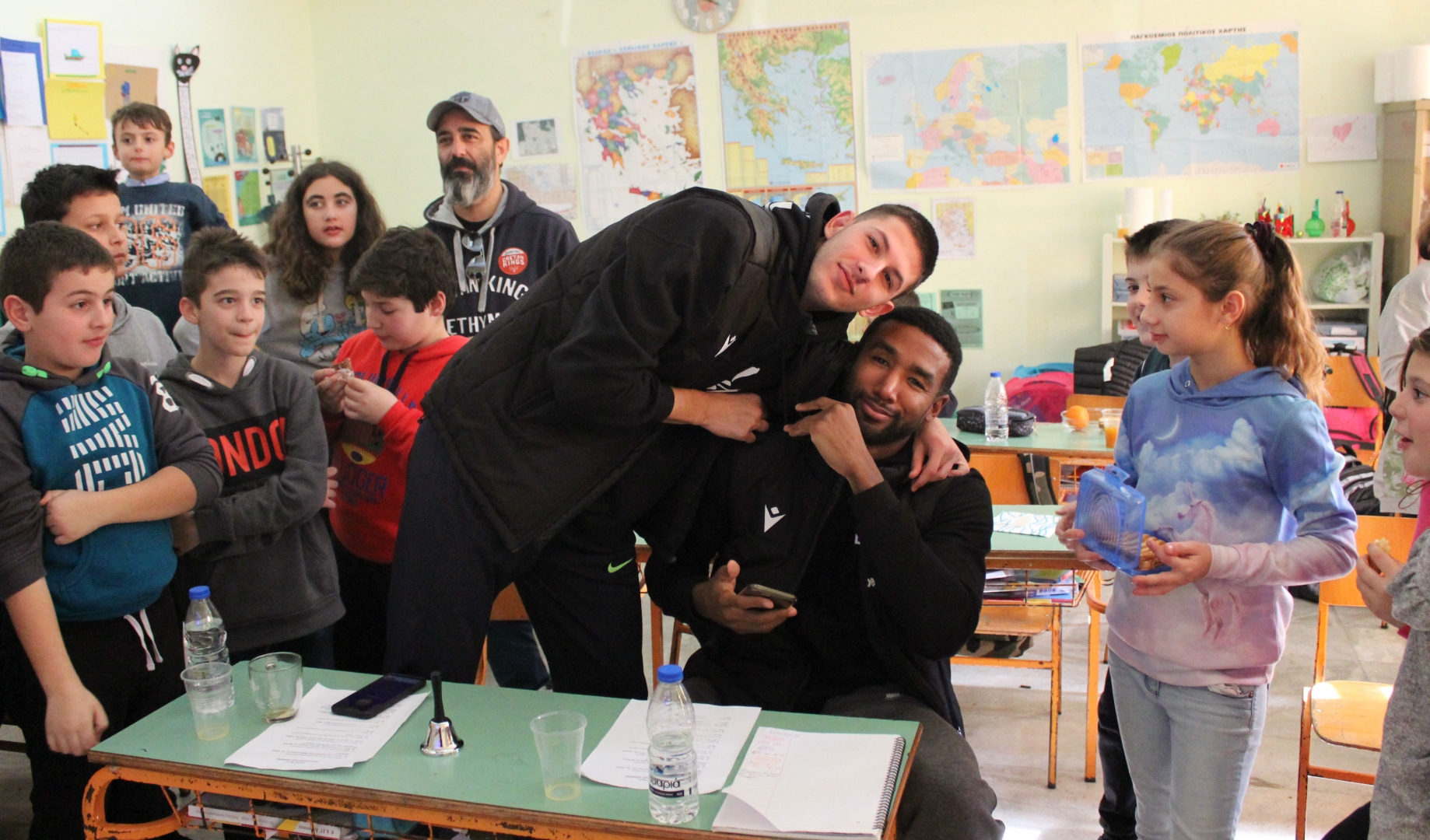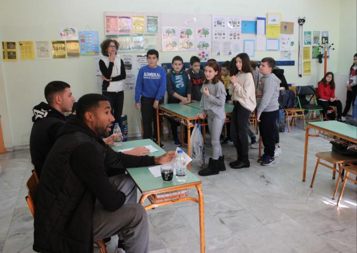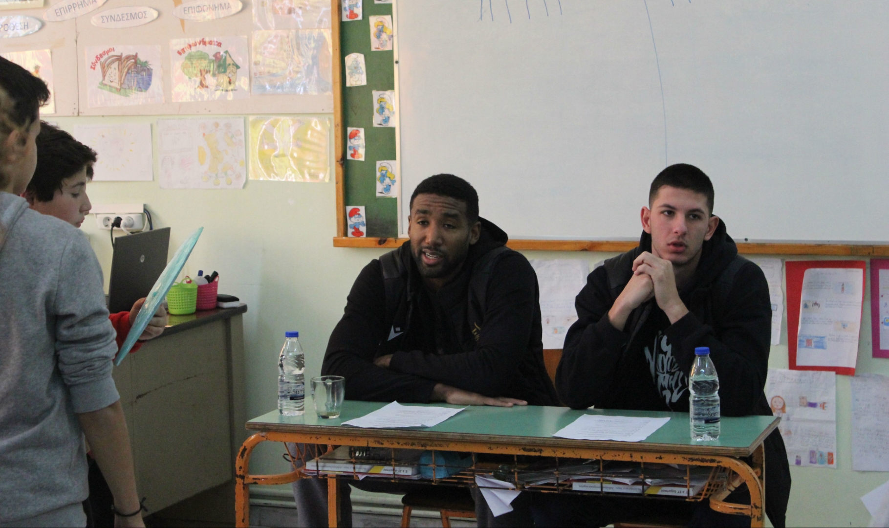 Οι παίκτες της ομάδας μας Μάλκολμ Λι και Ραφαήλ Λαναράς φιλοξενήθηκαν από το Ε’1, όπου οι μικροί μαθητές είχαν την ευκαιρία να συνομιλήσουν με τα ινδάλματα τους στα αγγλικά, πραγματοποιώντας δύο πρωτότυπους διαγωνισμούς. Οι μαθητές είχαν χωριστεί σε δύο ομάδες (LA Lakers – GS Warriors), με τους δύο καλαθοσφαιριστές να τους κάνουν ερωτήσεις, μπασκετικού περιεχομένου, με την πιο γρήγορη και διαβασμένη ομάδα να κερδίζει. Στη συνέχεια, οι Λι και Λαναράς διαγωνίστηκαν σε ένα κουίζ με ερωτήσεις, σχετικά με την ιστορία της ομάδας μας, που είχε ετοιμάσει η δασκάλα μαζί με τους μαθητές.