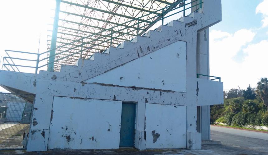 Παλιά και χαλασμένα κουφώματα, μαύρα και μουχλιασμένα δάπεδα από το χρόνο και την υγρασία, σοβάδες που έχουν πέσει και φαίνονται τα σκουριασμένα σίδερα, είναι χαρακτηριστικές εικόνες που αντικρίζει όποιος ανηφορίσει στο στάδιο.